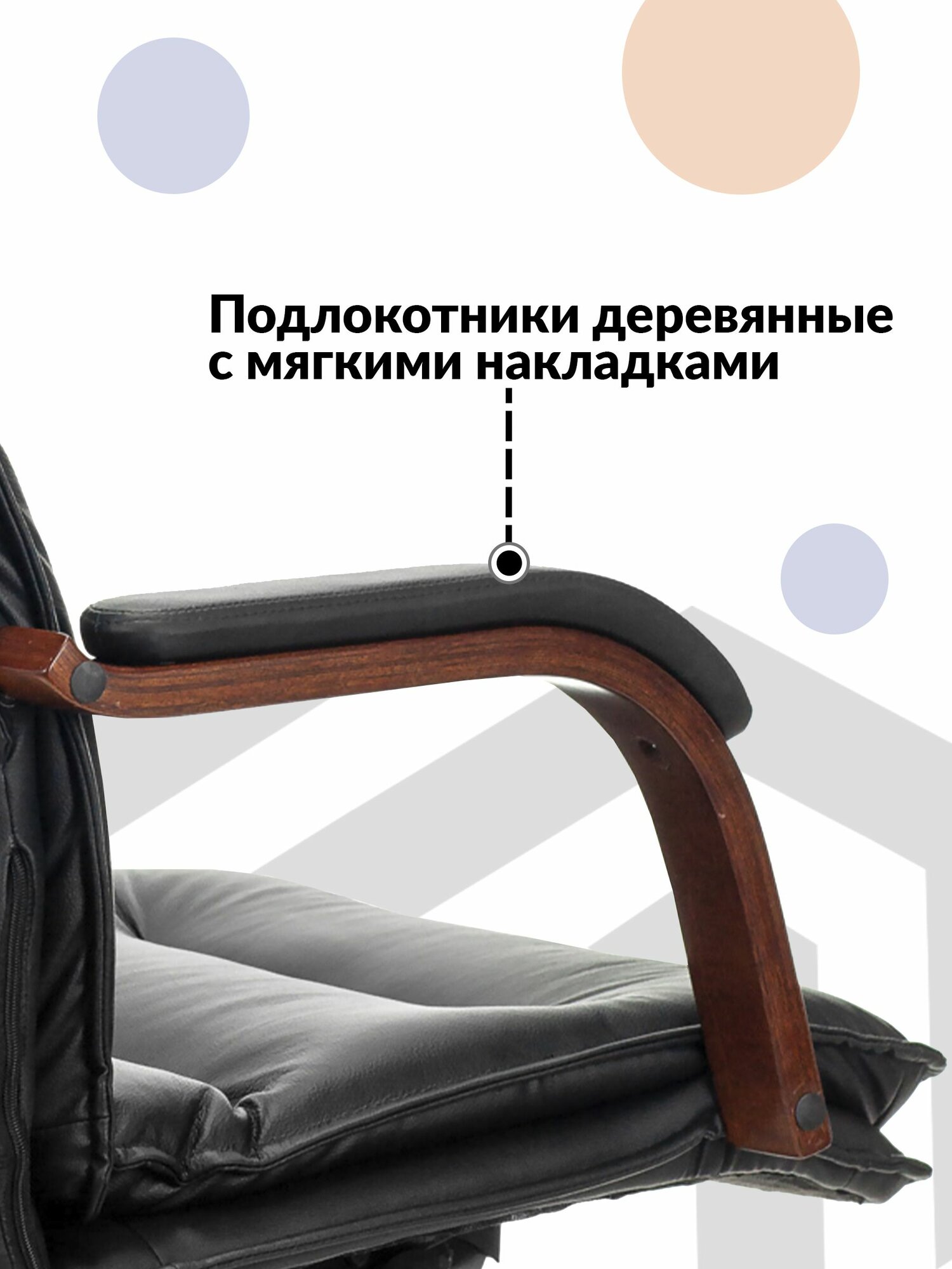 Кресло руководителя Бюрократ T-9927WALNUT-LOW черный кожа низк.спин. крестов. металл/дерево / Компьютерное кресло для директора, начальника, менеджера