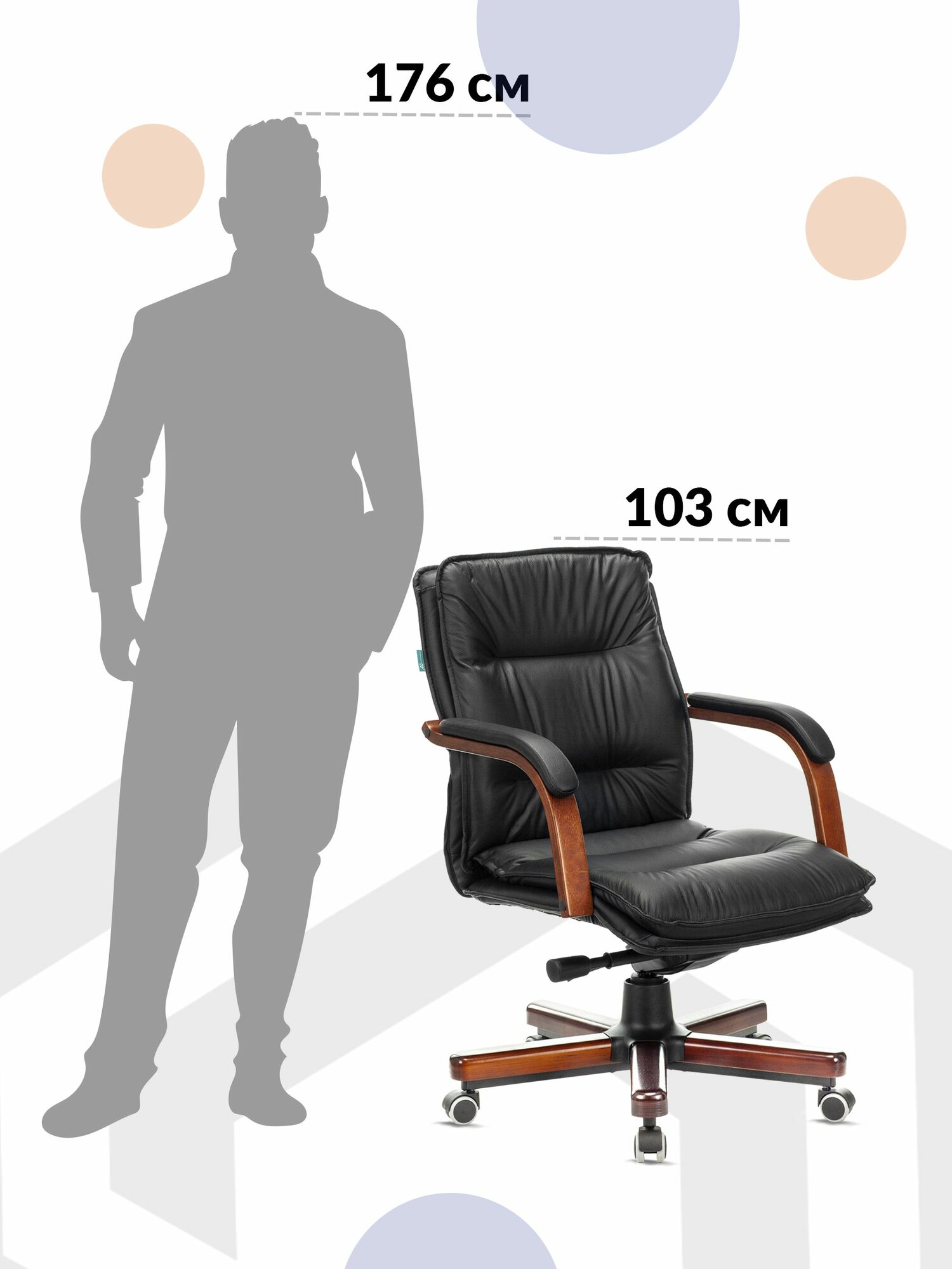 Кресло руководителя Бюрократ T-9927WALNUT-LOW, на колесиках, кожа, черный [t-9927walnut-low/bl]