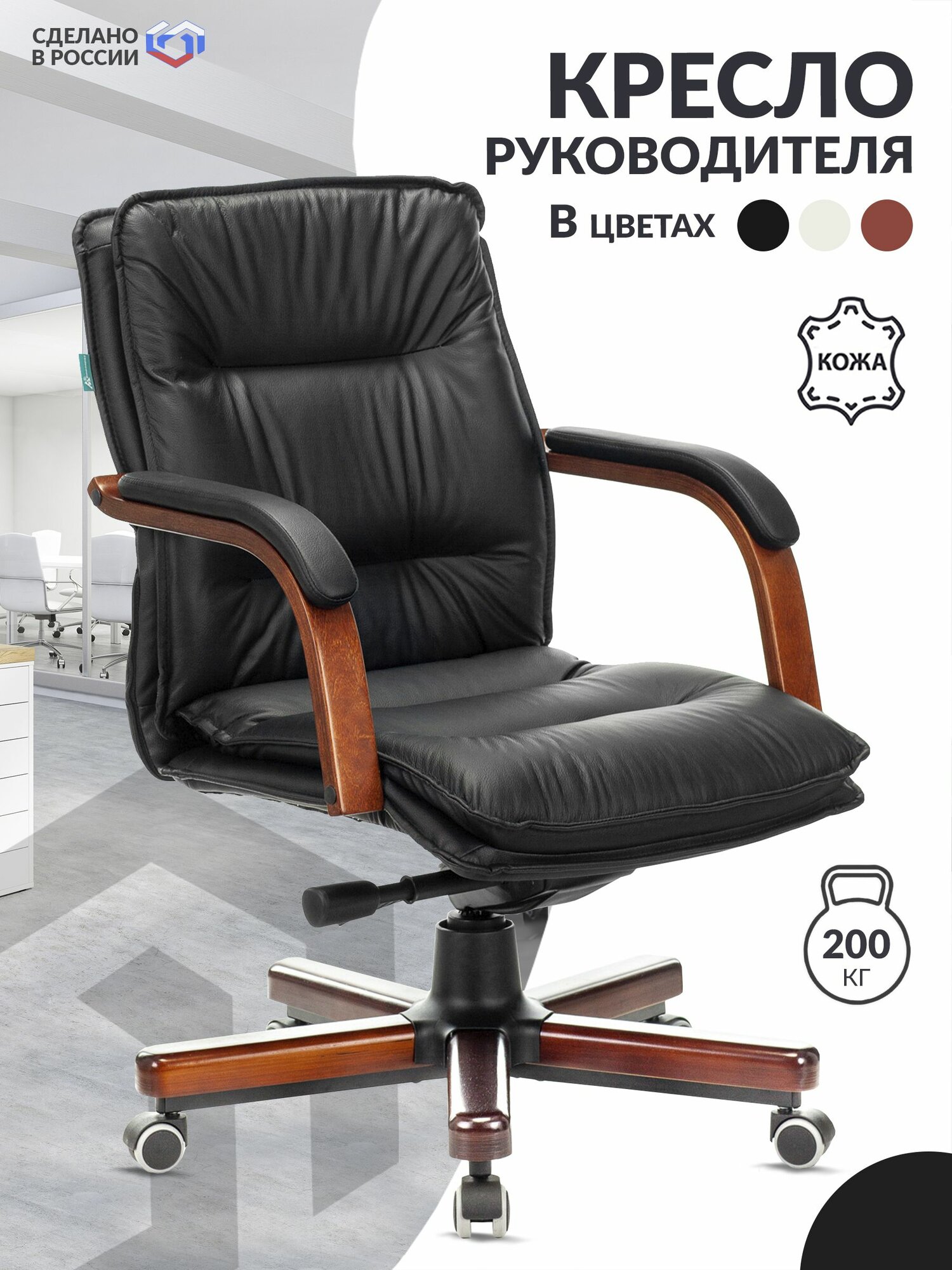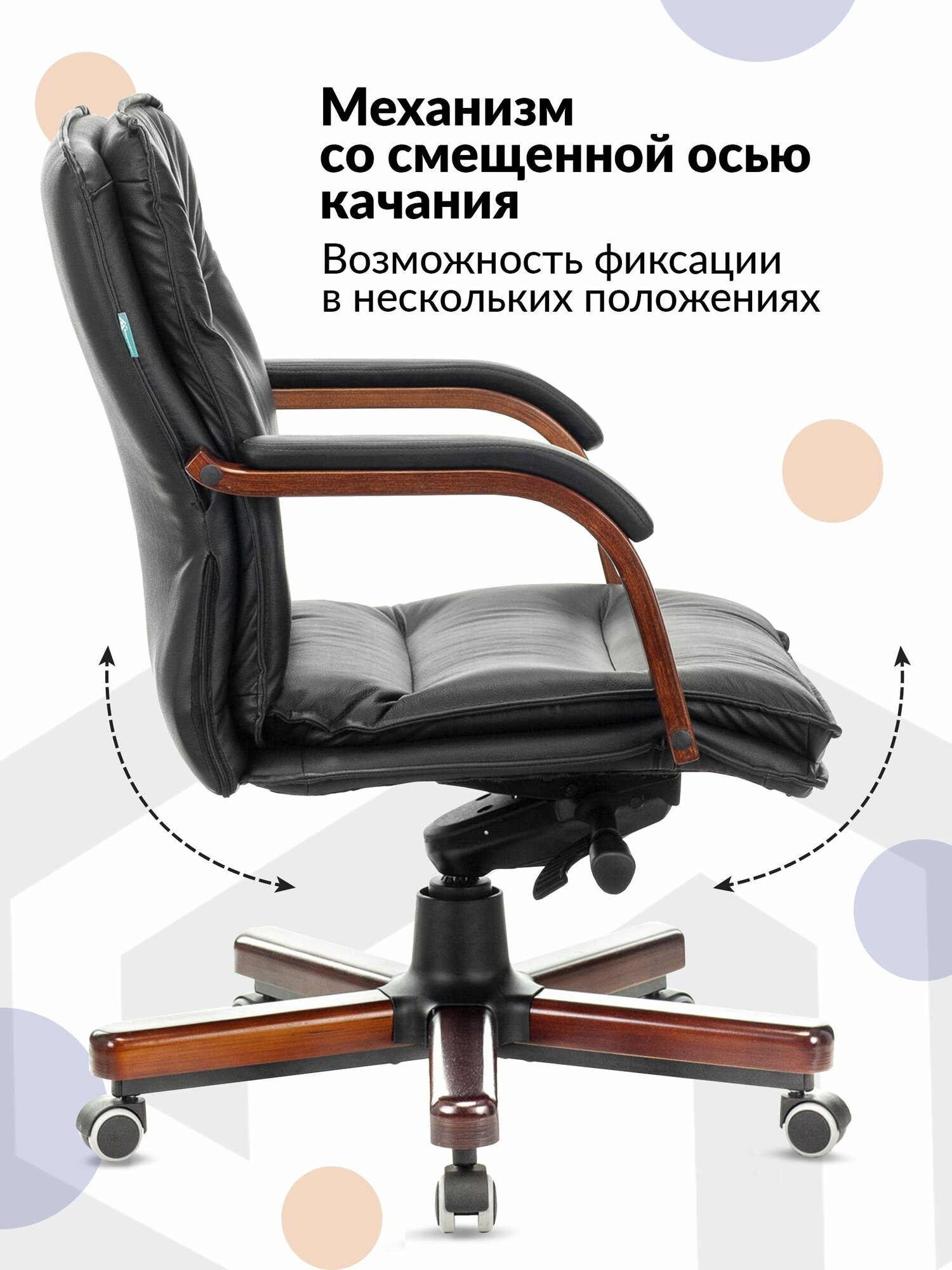 Кресло руководителя Бюрократ T-9927WALNUT-LOW Черный, кожа / Коричневый, дерево