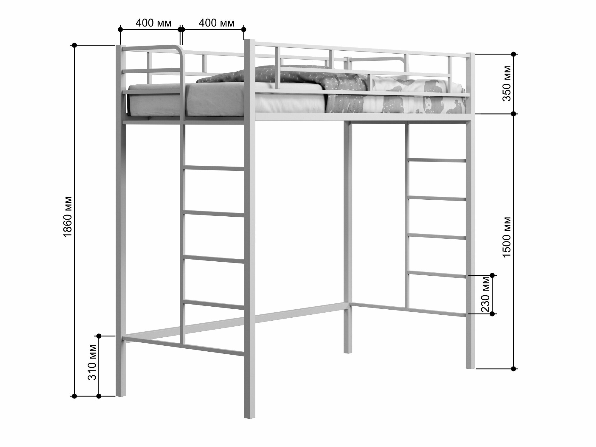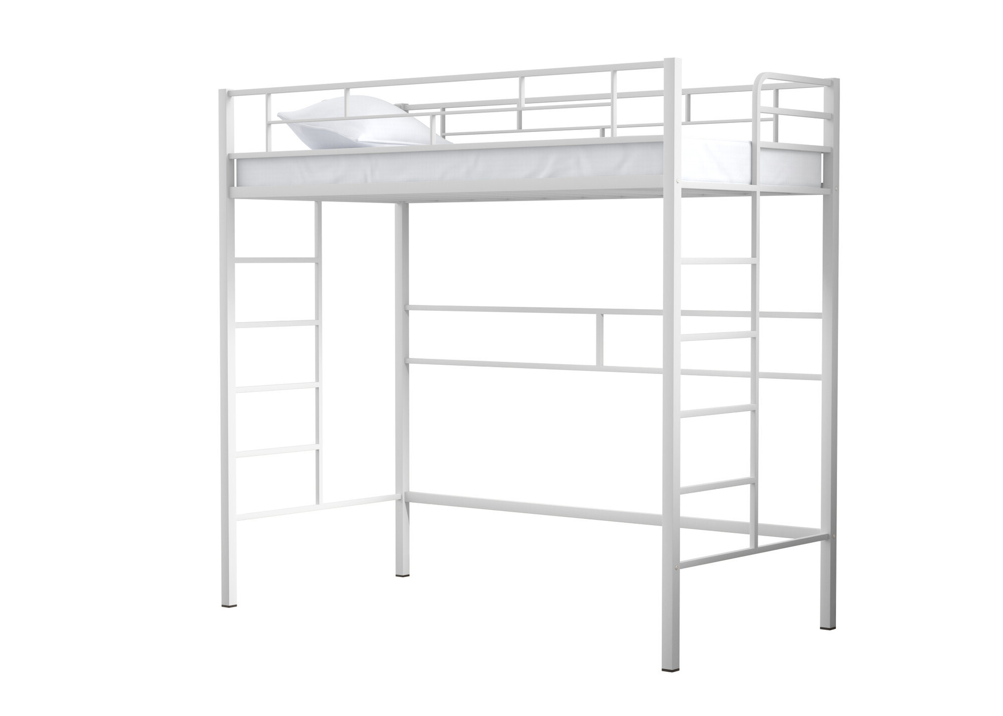 Кровать-чердак "Амстердам-2/120" Белая/ для детей и взрослых/спальное место 120х190 см/ двухъярусная кровать с нишей/ металлическая/ двухэтажная/ детская/ взрослая/ высокая/ железная/двуспальная