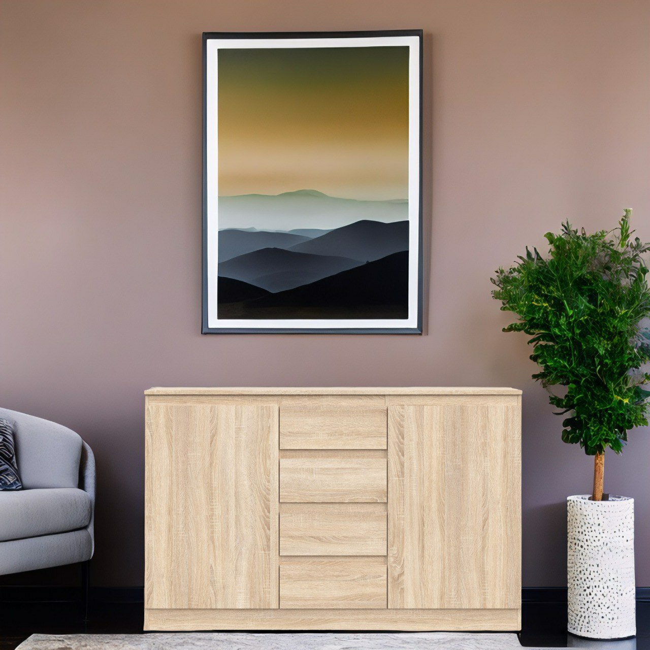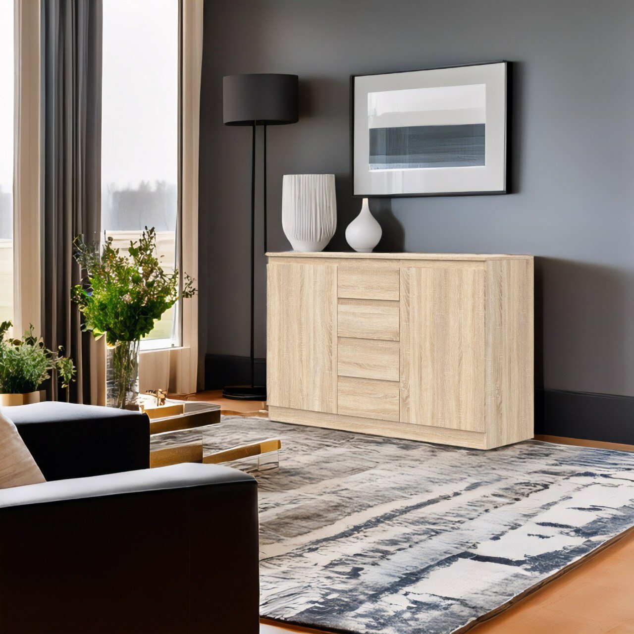 СохранитьКомод Stern Т 4, комод с выдвижными 4 ящиками и 2 дверцами деревянный, Дуб Сонома, 140,3 х 89,5 х 43,3 см (ШхВхГ) интересное:
