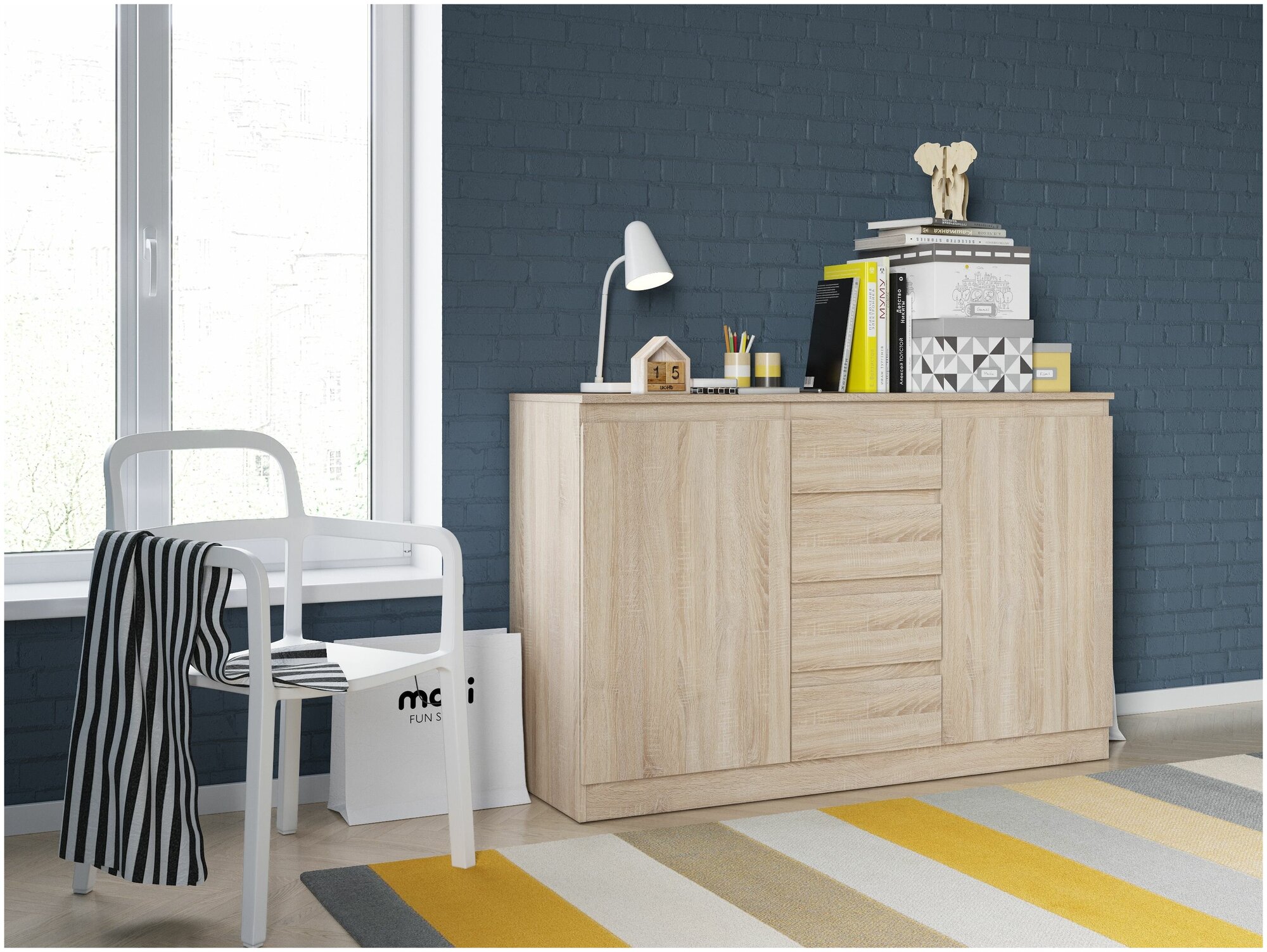 Комод НК-мебель FUN КД-4 Дуб Сонома/Белый (71336958) (2 коробки)