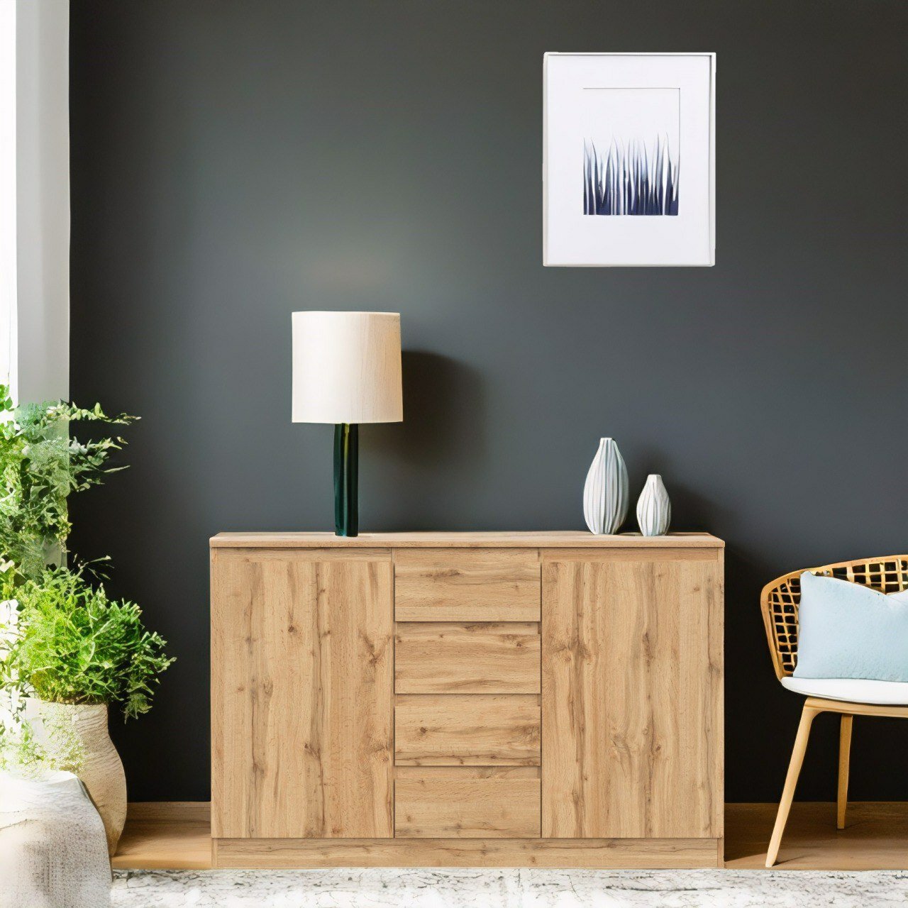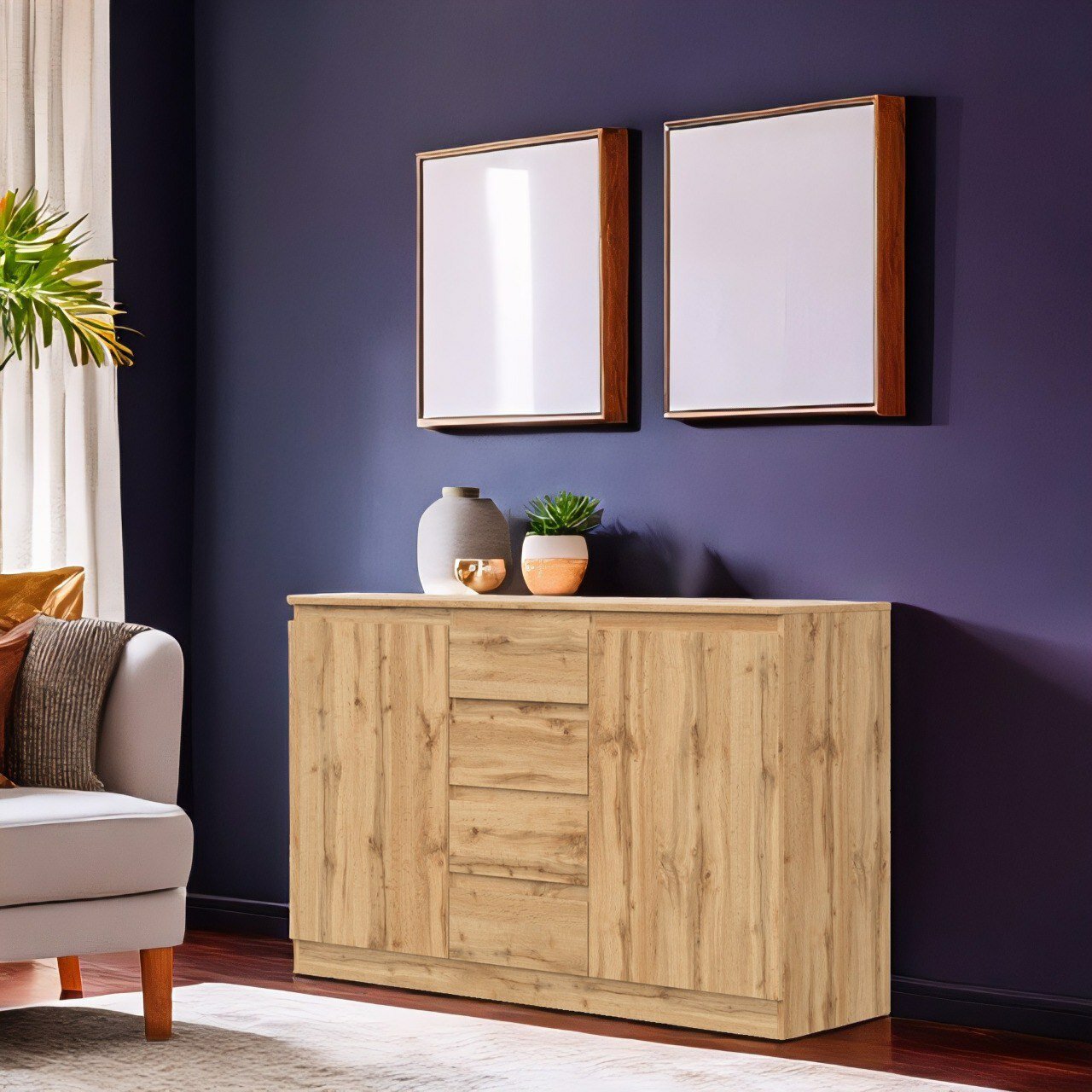 СохранитьКомод Stern Т 4, комод с выдвижными 4 ящиками и 2 дверцами деревянный, Дуб Вотан, 140,3 х 89,5 х 43,3 см (ШхВхГ) интересное: