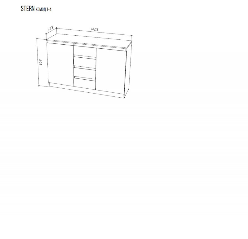 Штерн (STERN) комод Т-4, 140,3 х 89,5 х 43,3 см, 4 ящика, 2 двери, ЛДСП, Белый