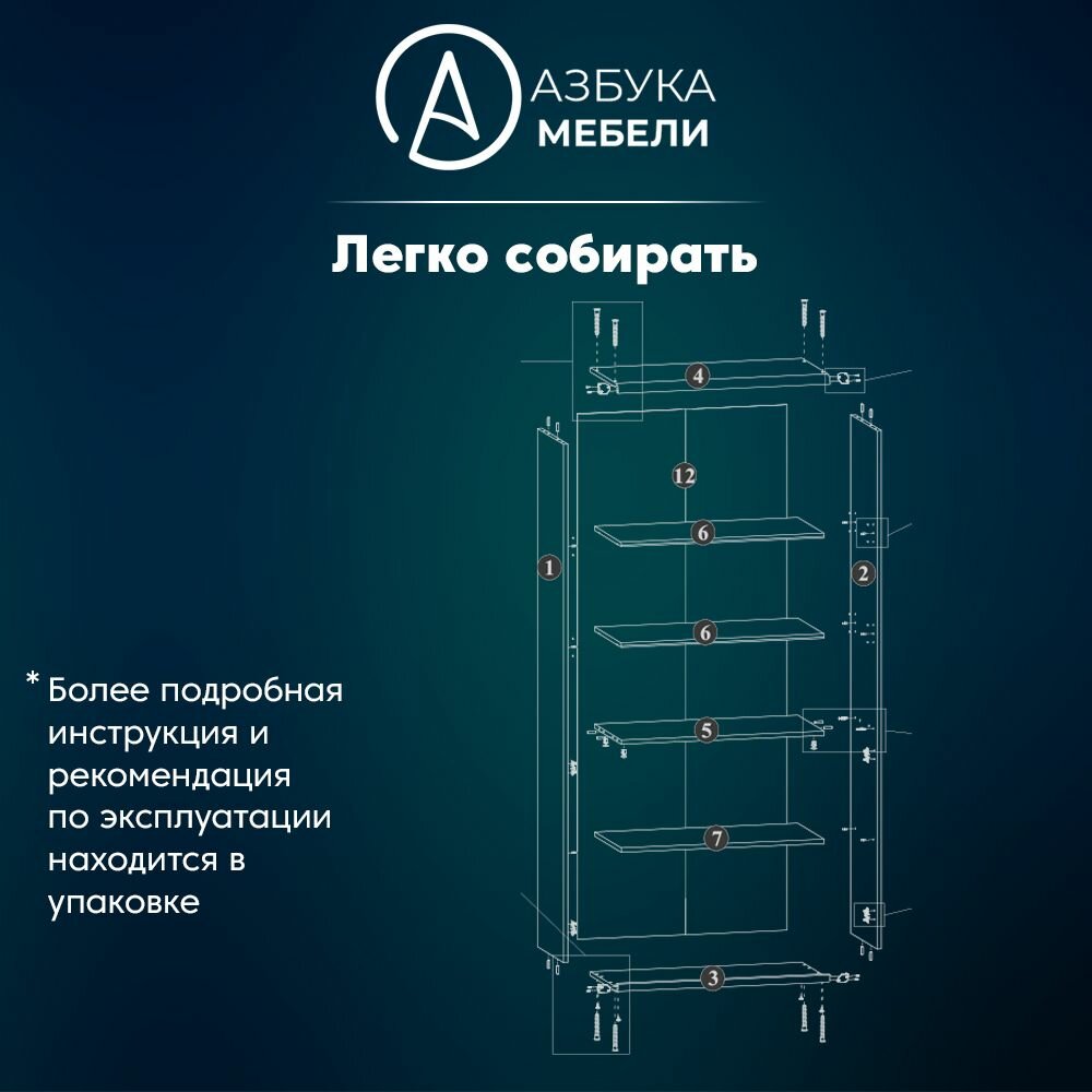 Шкаф для одежды распашной Нонтон Луас, 120 см, 7 полок и штанга, белый глянец