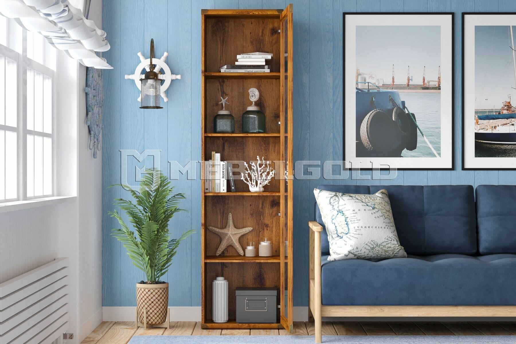 БРВ-Мебель Витрина однодверная шириной 50 см Индиана JWIT 1D 50 сосна каньйон