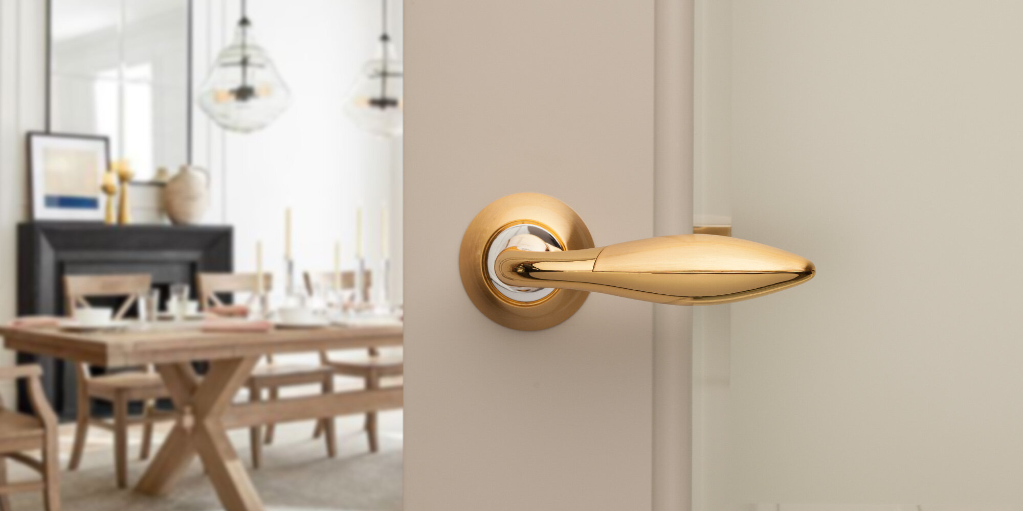 Ручка межкомнатная ARCHIE S010 112HH Aurora Line, белый никель, золото