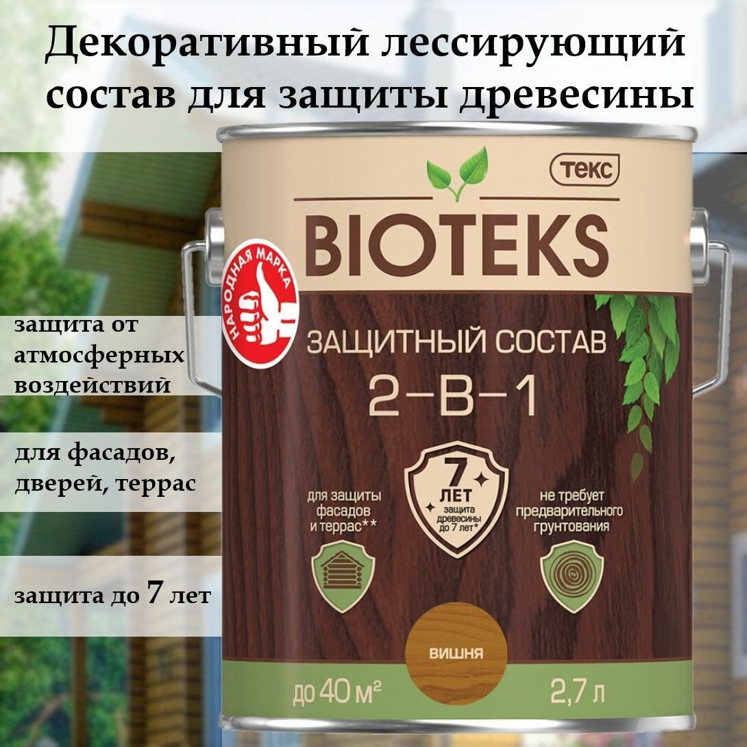 Купить Защитный лессирующий состав для дерева Bioteks 2-в-1, 2,7 л, вишня