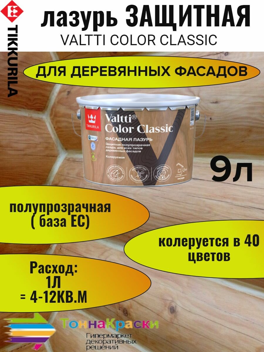 Лазурь фасадная колеруемая для древесины Tikkurila Valtti Color Classic (9л)