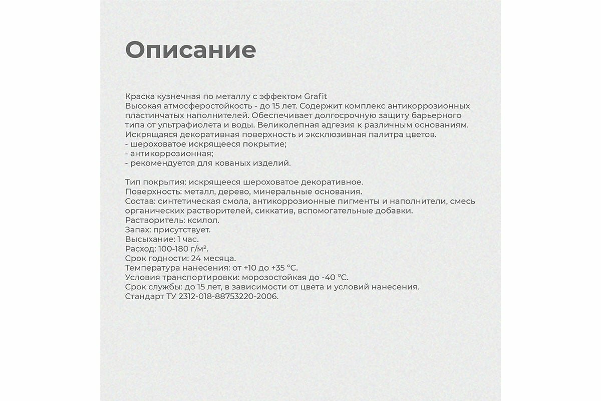 Краска кузнечная по металлу "Престиж" Grafit, 0,9 кг, цвет: черный интересное: