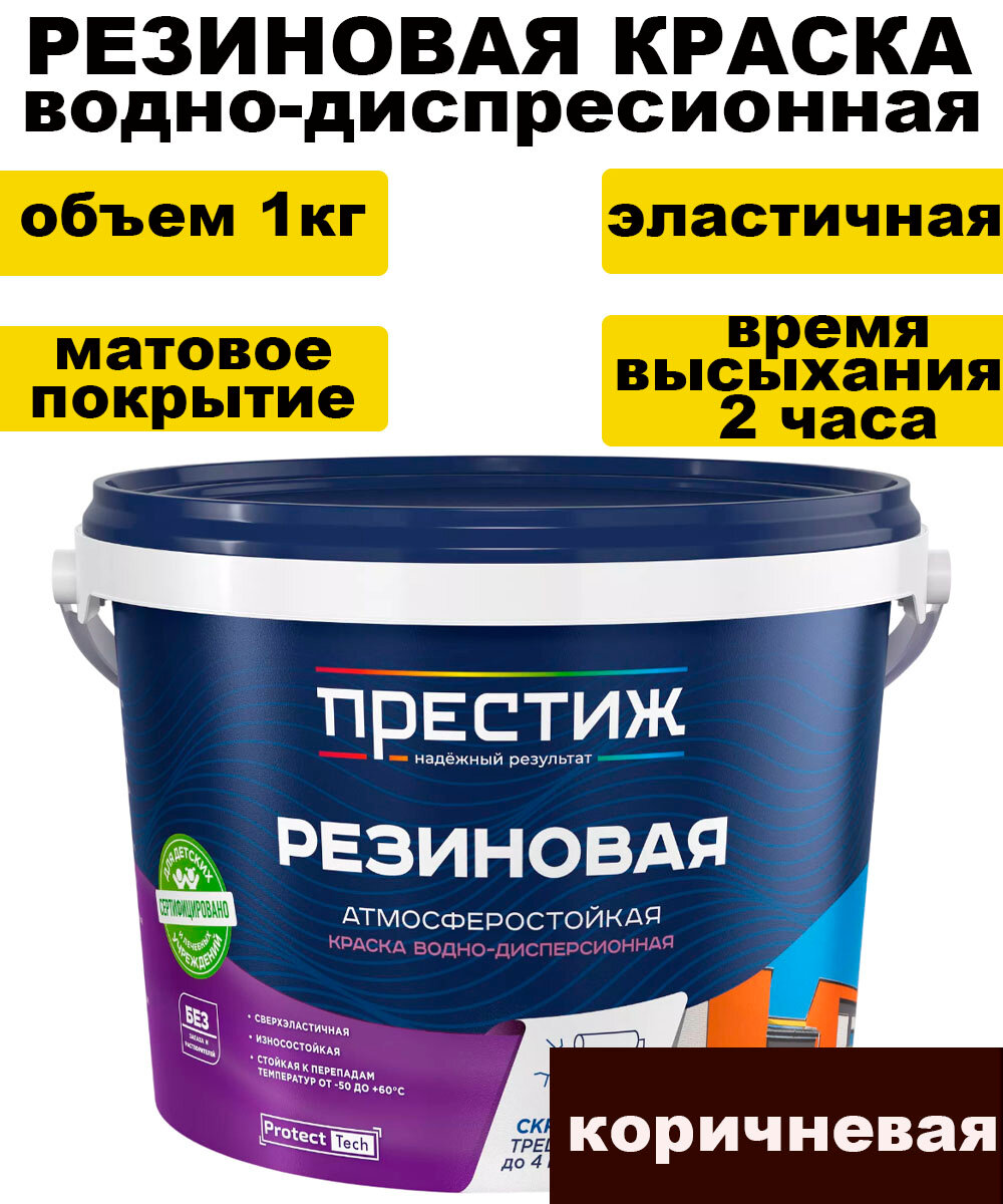 Краска резиновая водно-дисперсионная Престиж, матовая, 1 кг, коричневая