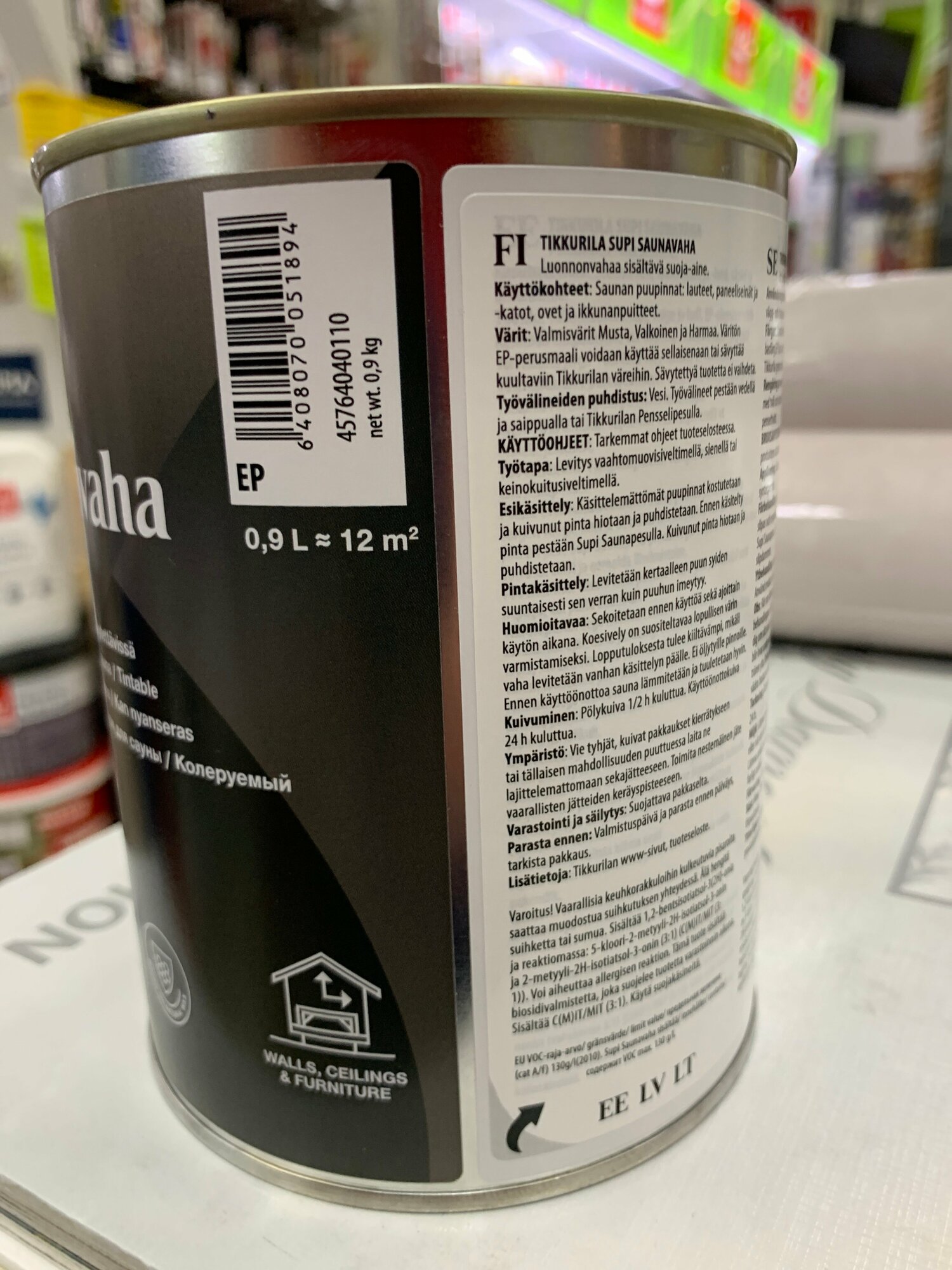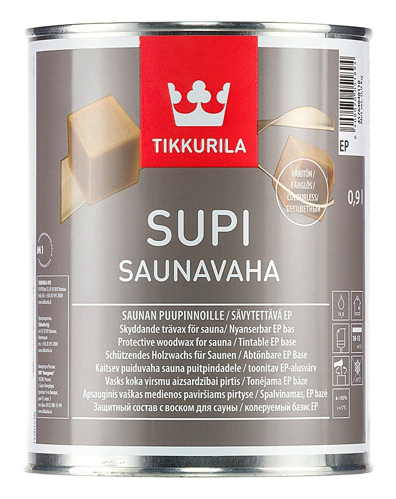 Защитный состав для саун с содержанием воска Tikkurila Supi Saunavaha, бесцветный, 0.9 л