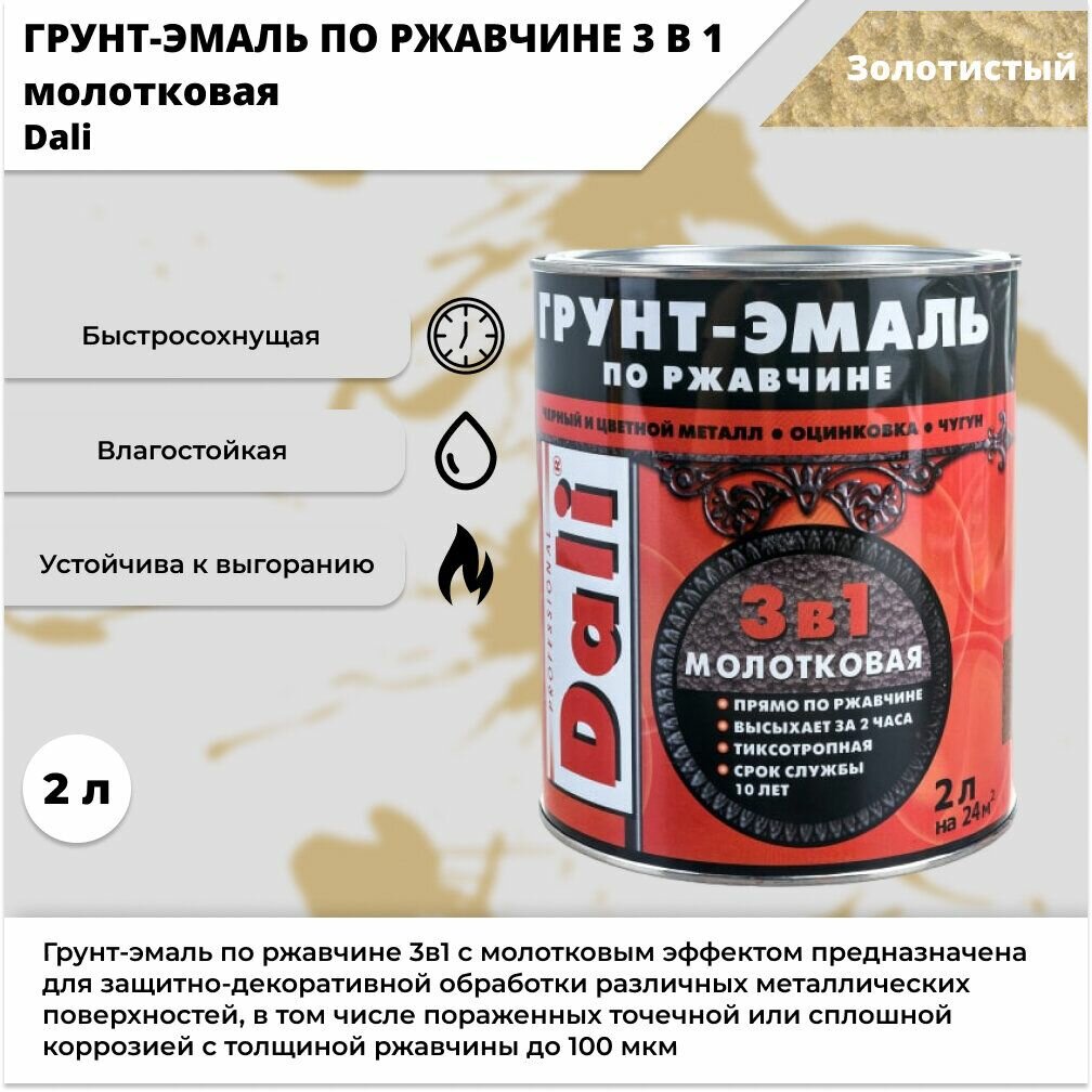Купить Dali Грунт-Эмаль по ржавчине 3в1 молотковая (Золотистый, 2 л)