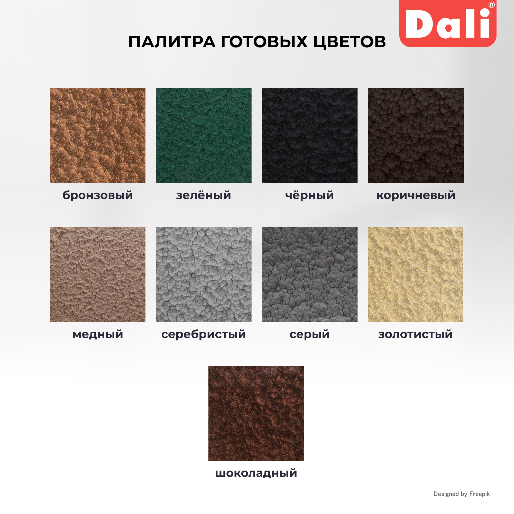 Dali, грунт-эмаль по ржавчине 3 в 1 с молотковым эффектом, 10 л Коричневый