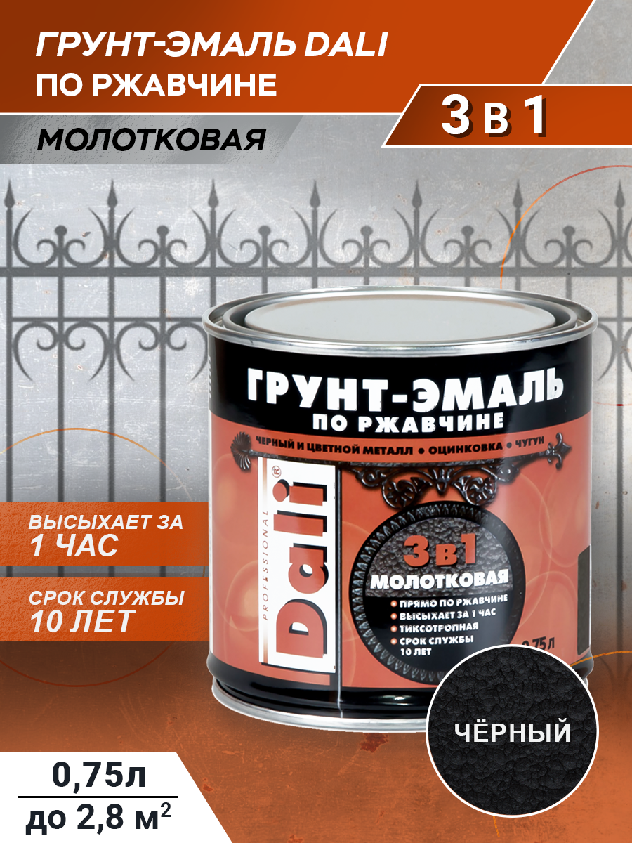 Грунт-эмаль по ржавчине молотковая Dali 0,75 л черный