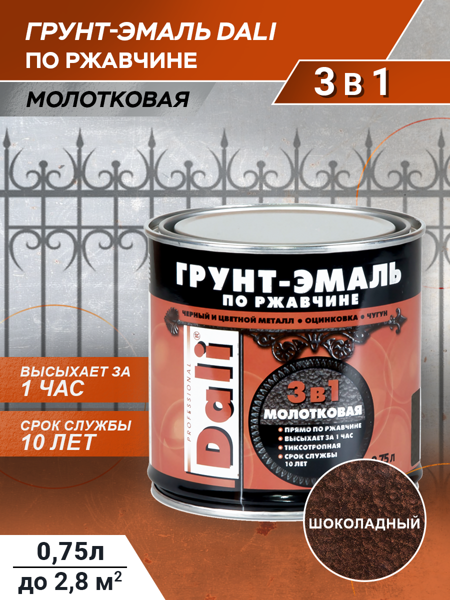 Купить грунт-эмаль по ржавчине молотковая Dali шоколадный, 0,75л