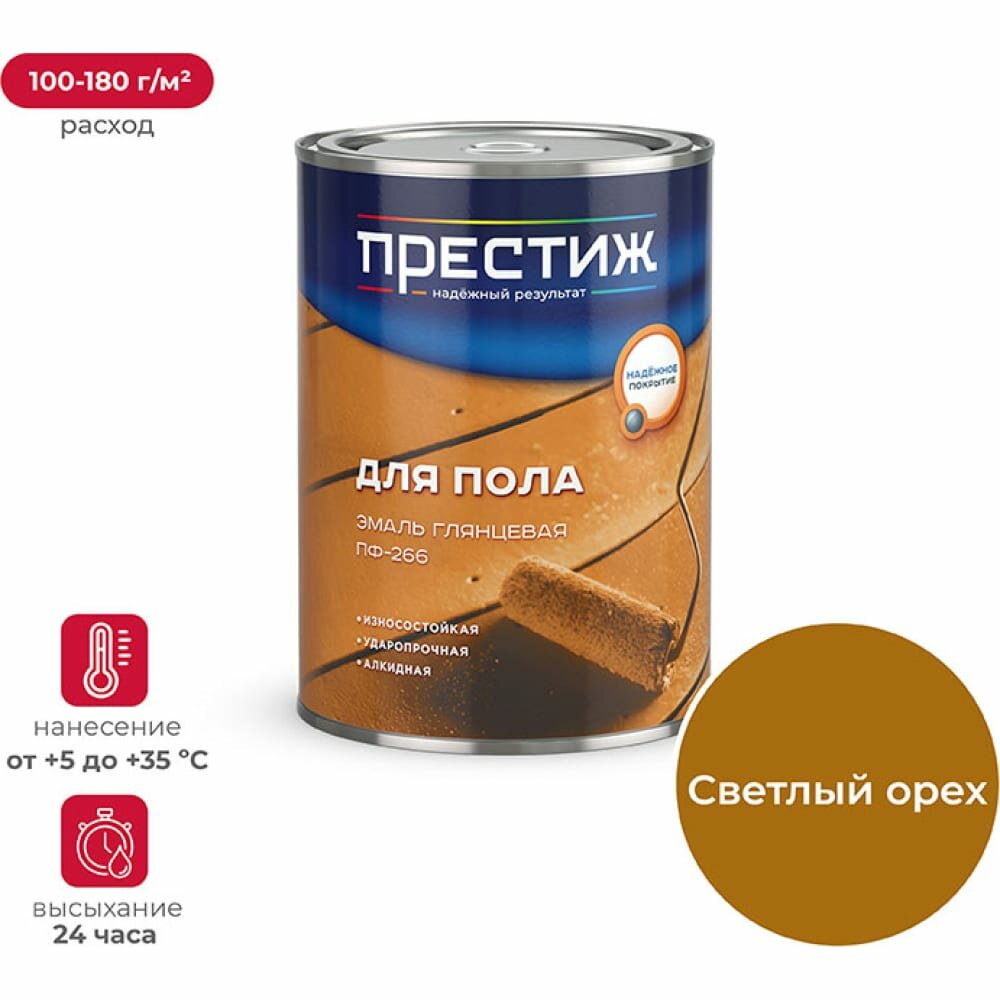 Эмаль ПФ-266 для пола Престиж, алкидная, глянцевая, 0,9 кг, светлый орех
