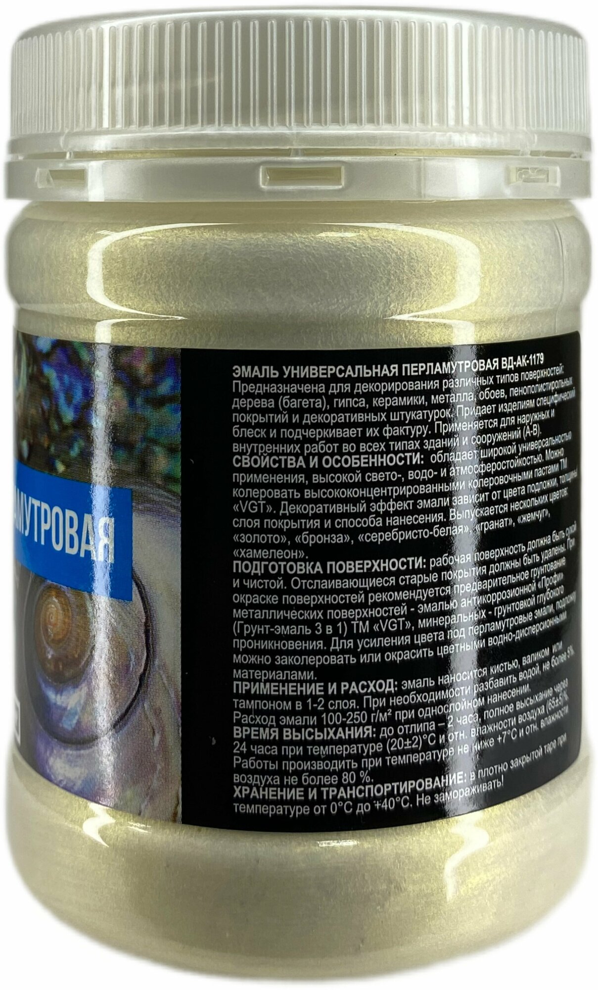 VGT ВД-АК-1179 эмаль универсальная перламутровая акриловая, серебристо-белая (1кг)