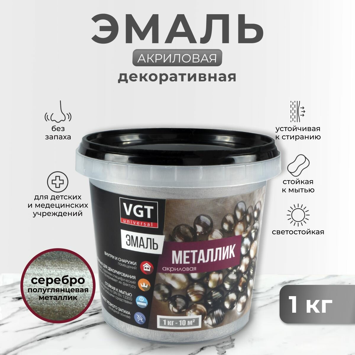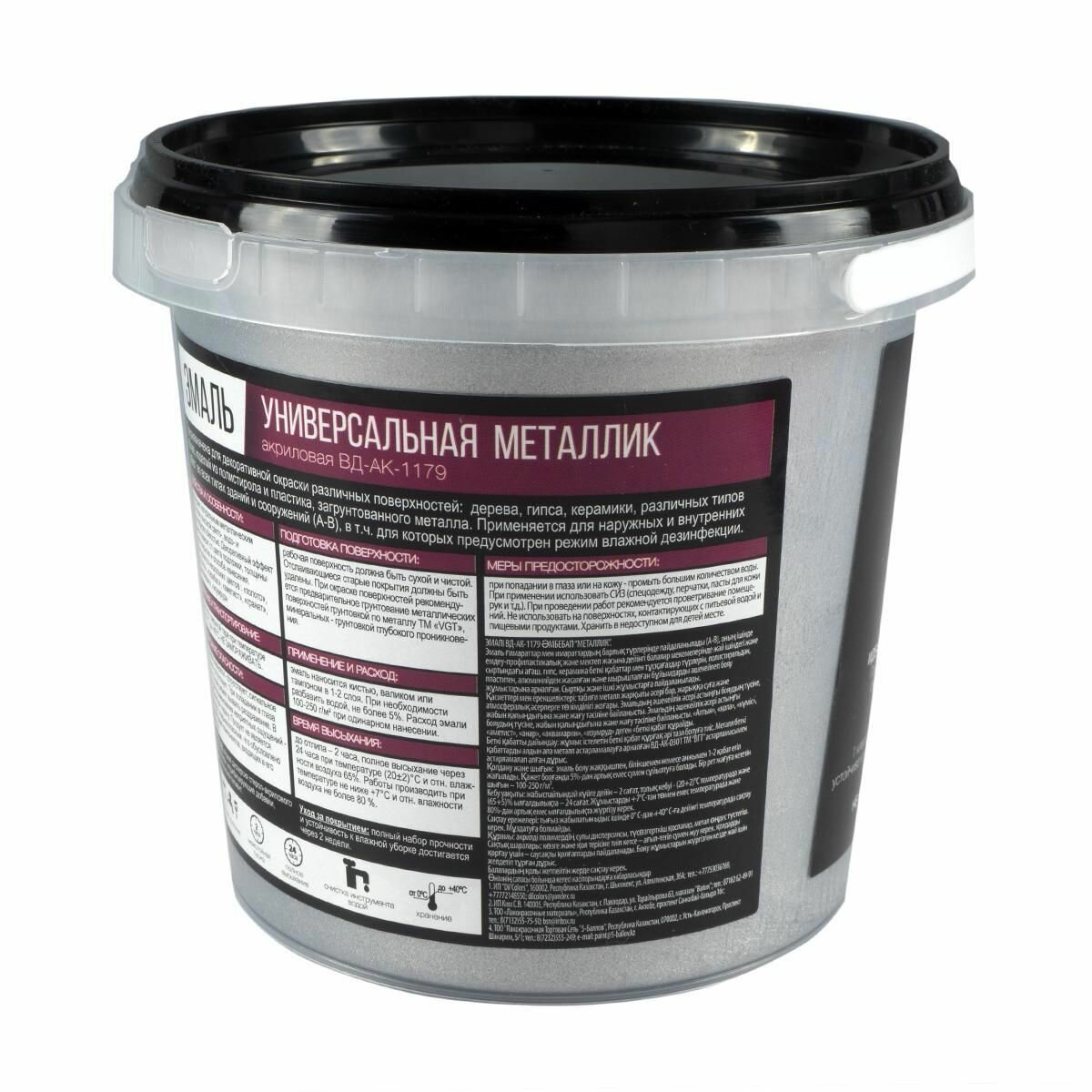 Купить Эмаль универсальная VGT ВД-АК-1179 металлик, 1 кг, серебро
