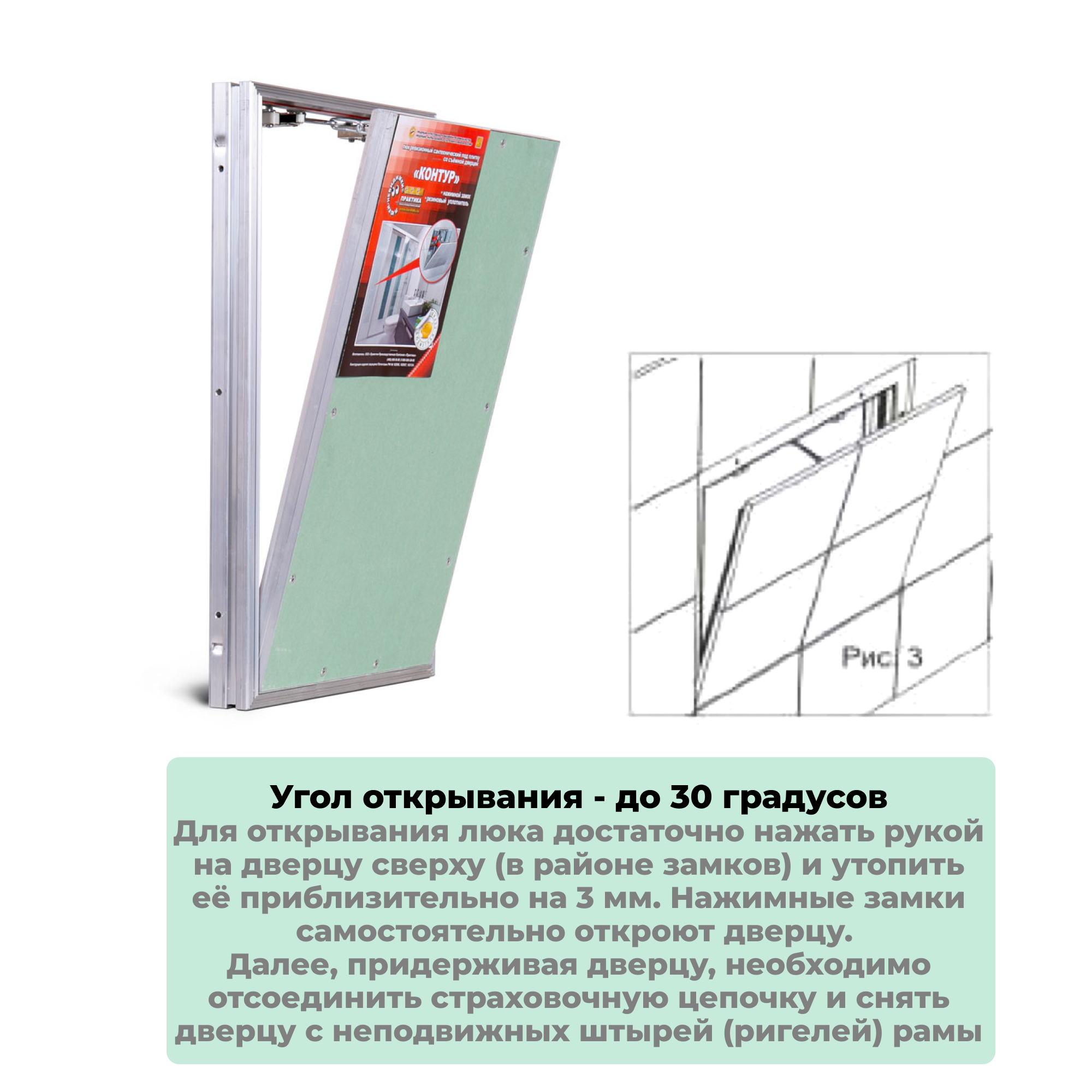 СохранитьЛюк «Контур» 30-50 (300х500 мм) под плитку и под покраску со съёмной дверцей на цепочке Практика интересное: