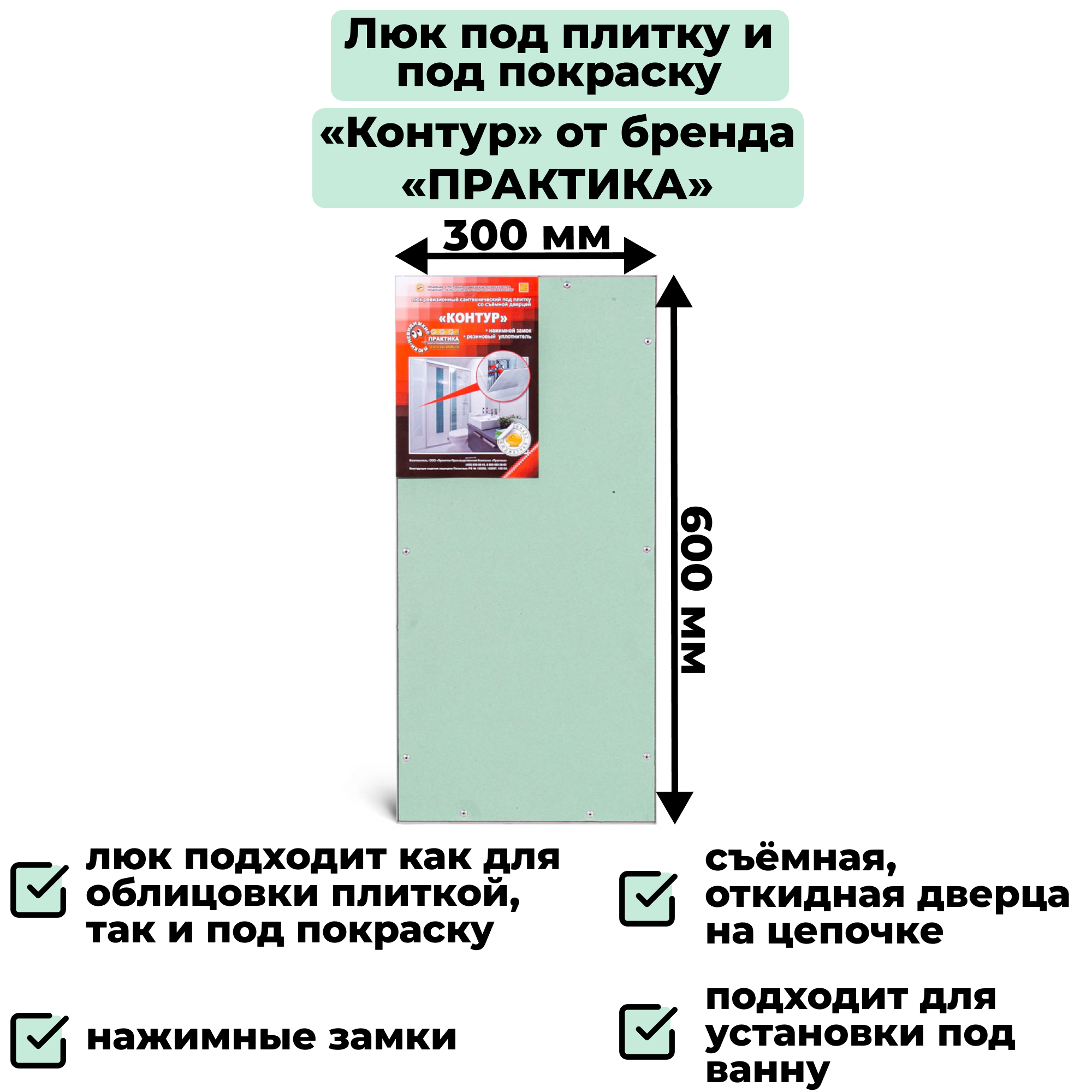 СохранитьЛюк «Контур» 30-60 (300х600 мм) под плитку и под покраску со съёмной дверцей на цепочке Практика интересное: