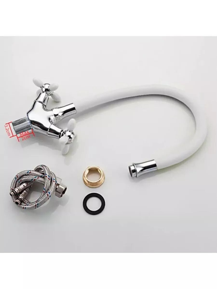 Смеситель для раковины FRUD R44127-7 с кран-буксой, гибкий излив, белый