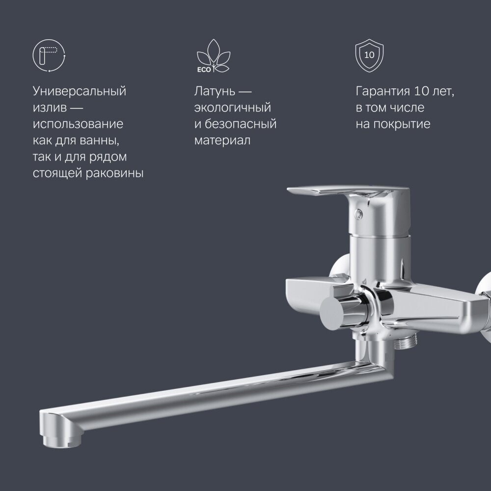 СохранитьСмеситель для ванны и душа Am.Pm Gem хром, универсальный поворотный излив 320 мм, керамический картридж интересное: