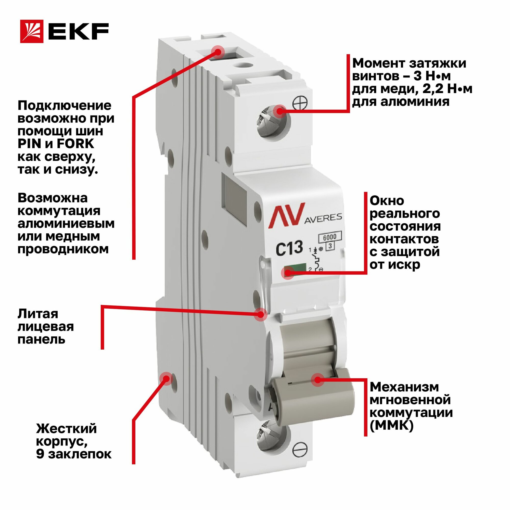 Выключатель автоматический модульный 1п C 1А 6кА AV-6 AVERES, EKF MCB6-DC-1-01C-AV (1 шт.)