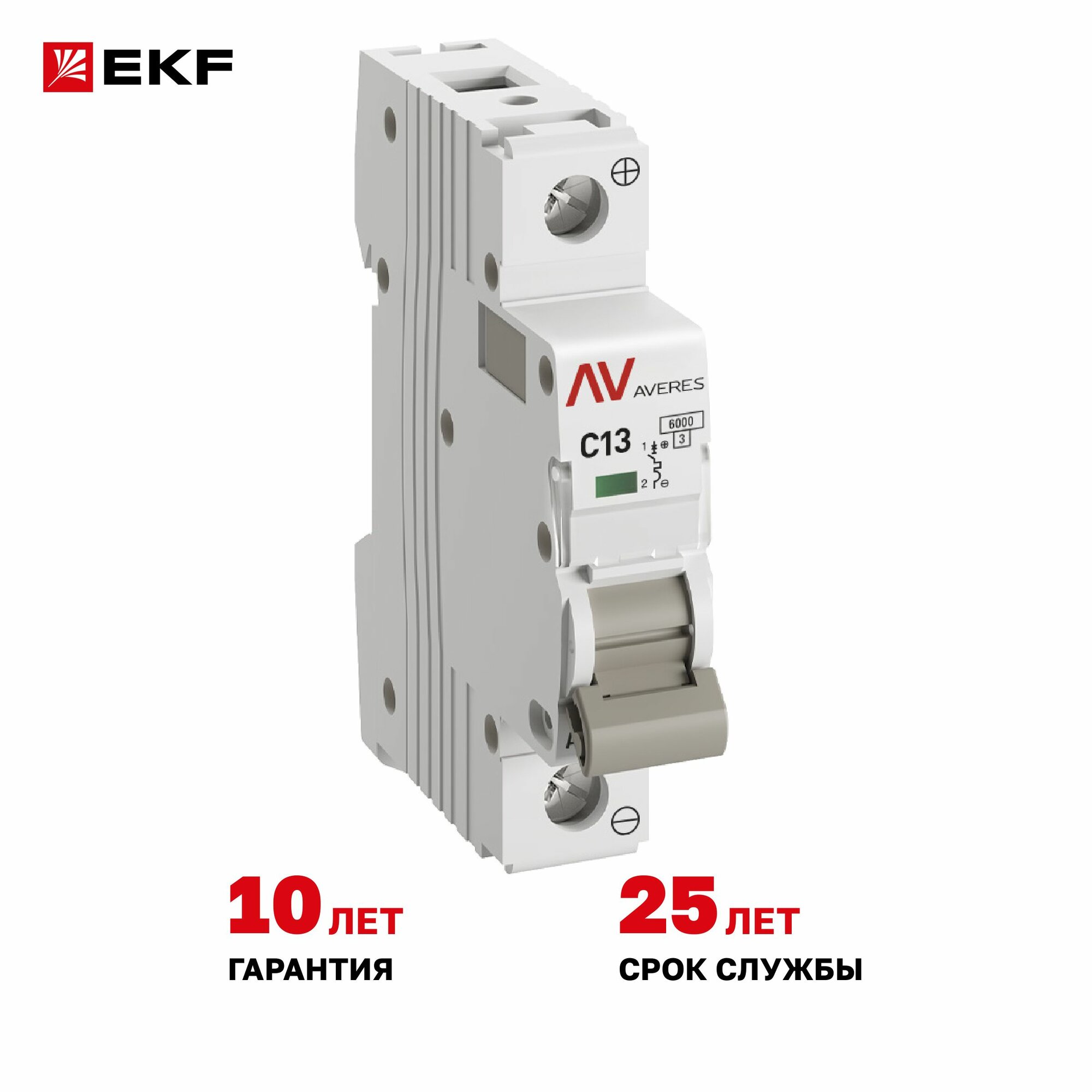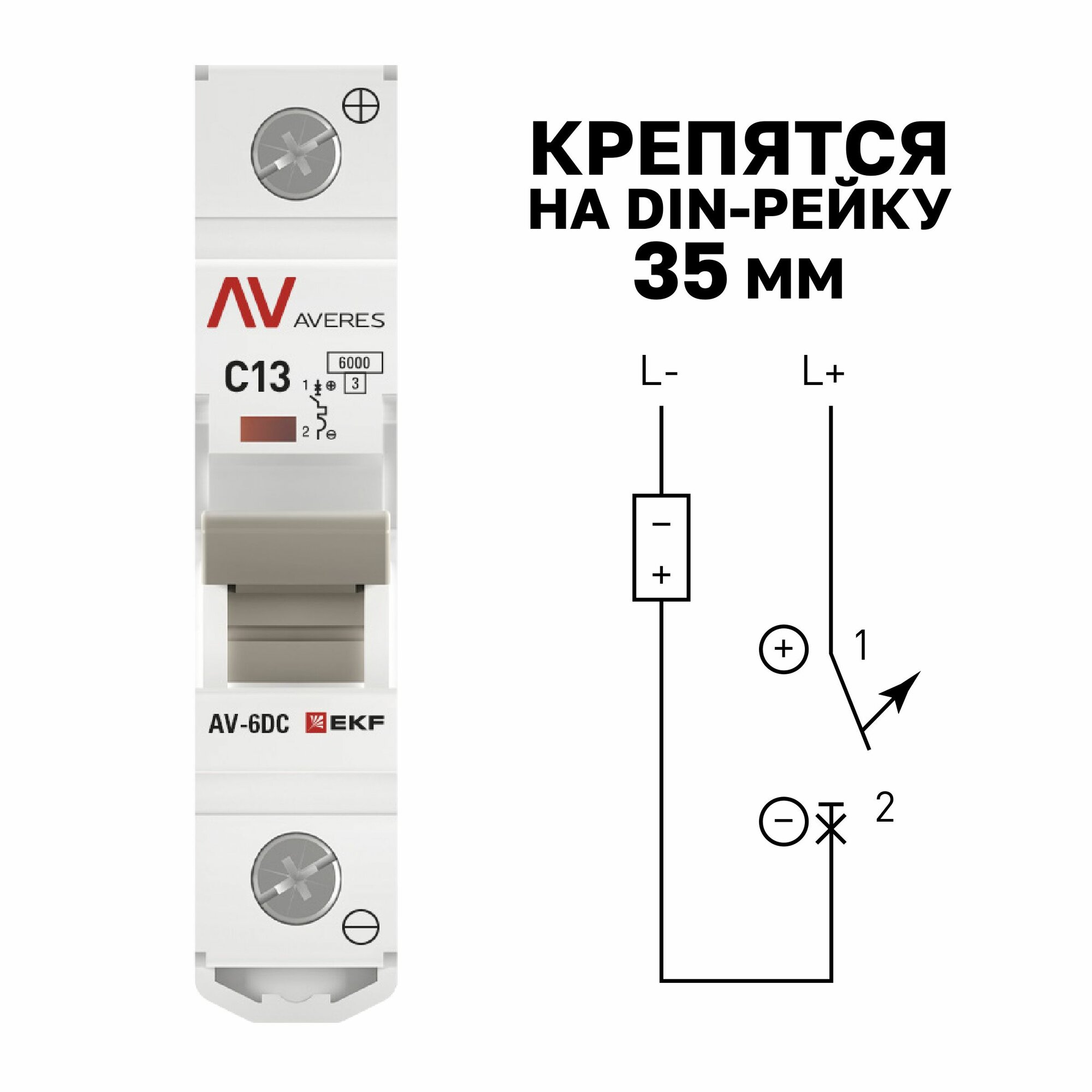 Купить Автомат постоянного тока 13А, тип C, однополюсный 1P, 6kA, EKF AVERES AV-6 DC (Выключатель автоматический C13 (DC))