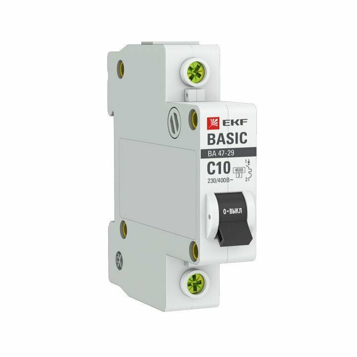 Автоматический выключатель 1P 10А (C) 4,5кА ВА 47-29 Basic, EKF