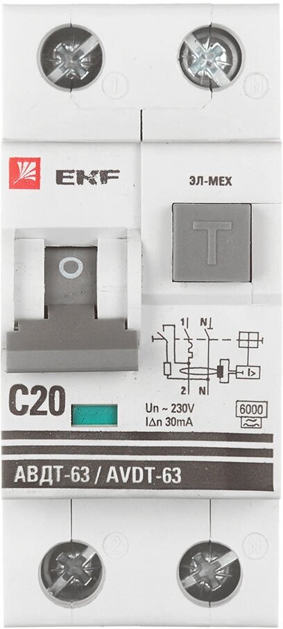 Автомат дифференциальный EKF PROxima АВДТ-63 20А 30 мА 1P+N тип A 6 кА (DA63-20-30)