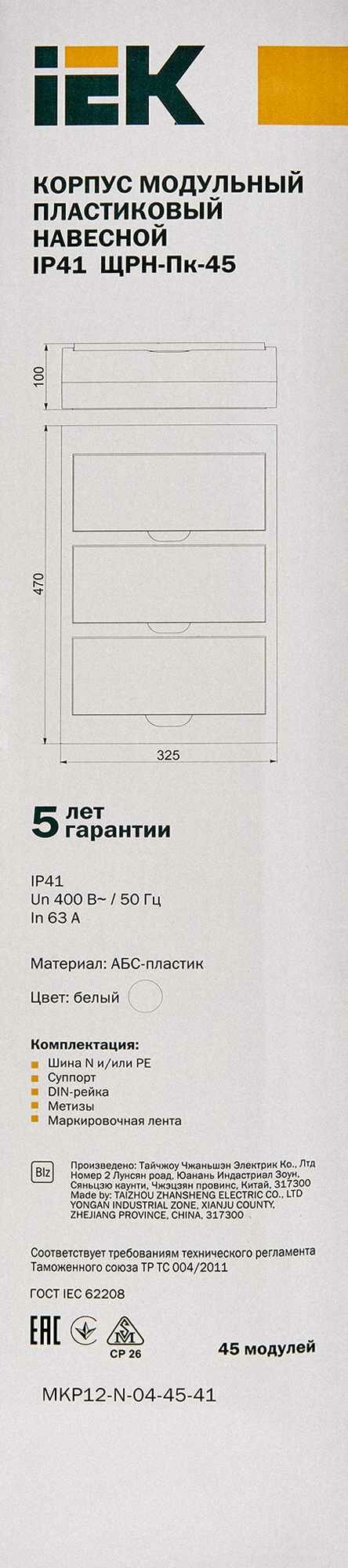 Корпус ЩРН-Пк-45 Krepta 3 IP41 навесной пластик. бел. IEK MKP12-N-04-45-41