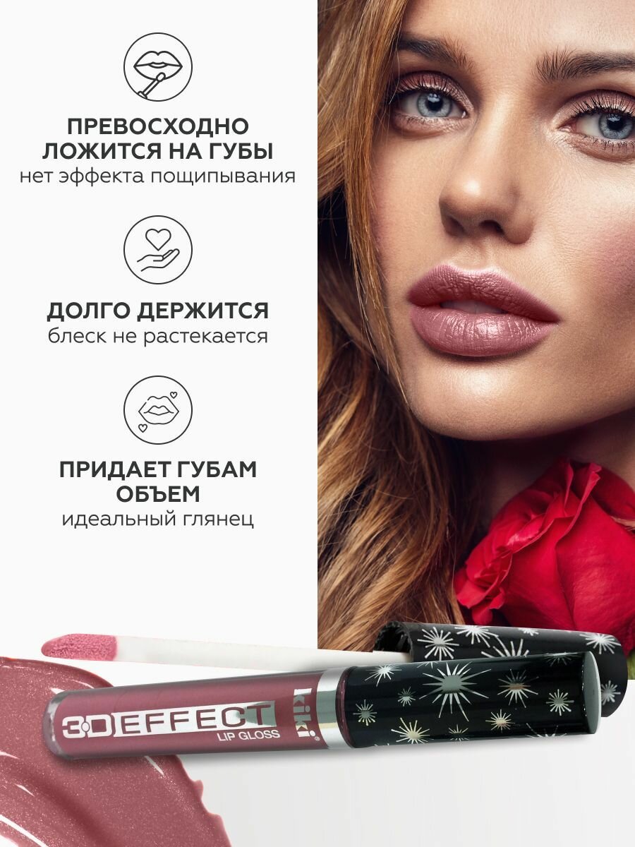 Блеск для губ kiki 3D EFFECT, придающий объем, тон 914 каштаново-розовый, LIP GLOSS, глянцевый блеск с перламутром и увеличением объема, не липкая структура, увлажняющая и стойкая жидкая помада