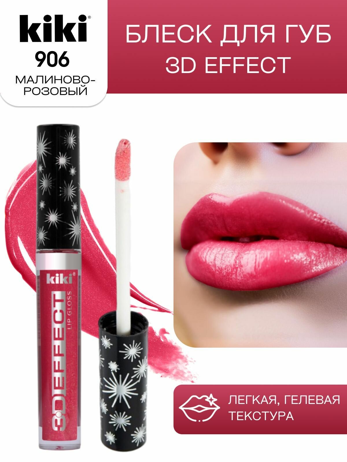 Купить Блеск для губ kiki 3D EFFECT, придающий объем, тон 906 малиново-розовый, LIP GLOSS, глянцевый блеск с перламутром иувеличением объема, не липкая структура, увлажняющая и стойкая жидкая помада