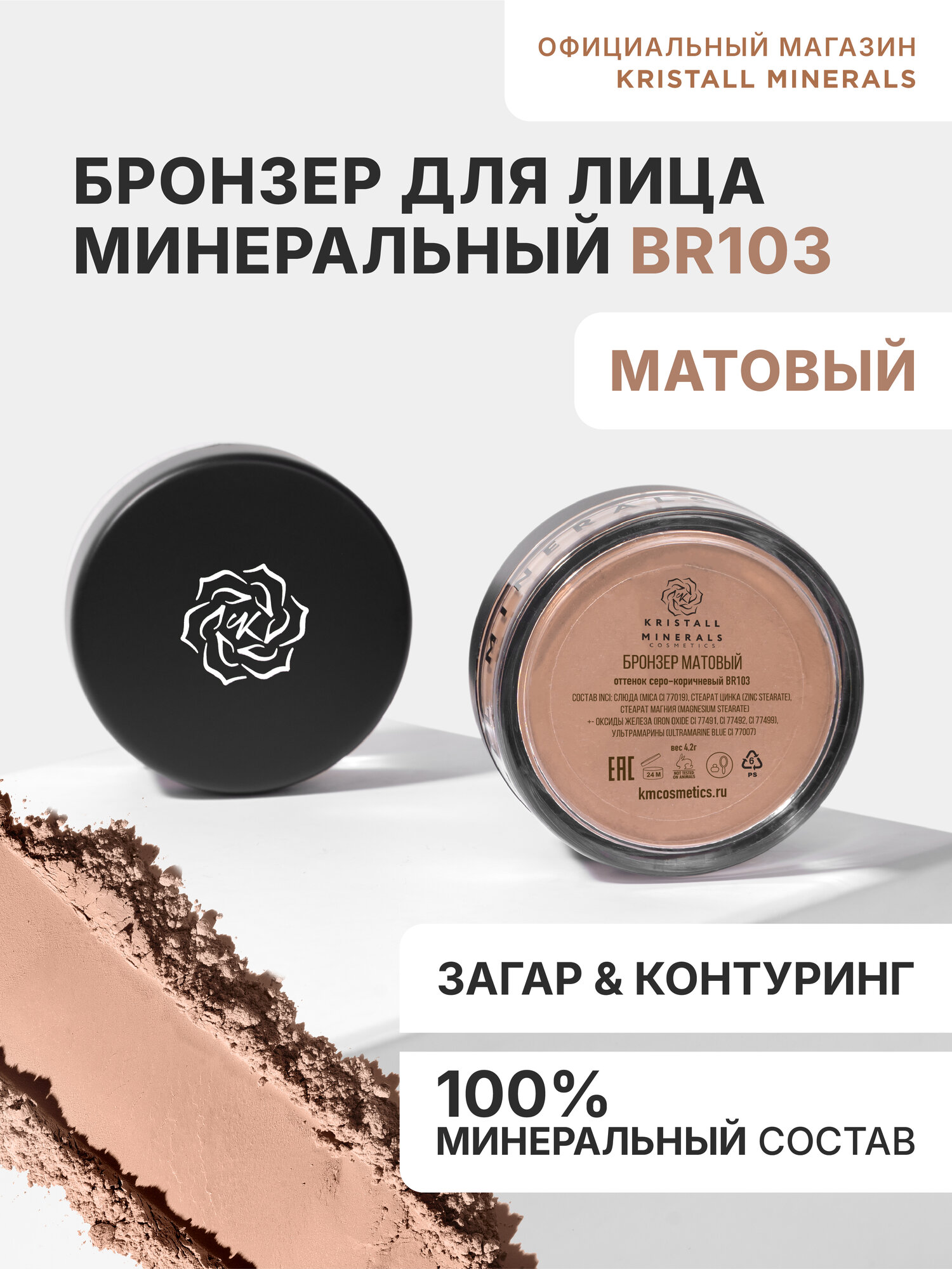 Бронзер Матовый финиш BR103, Kristall Minerals
