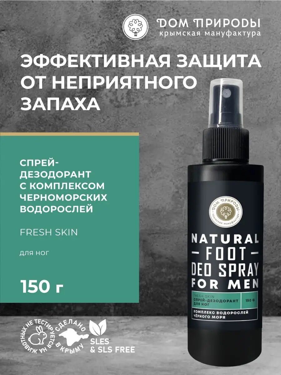 Натуральный спрей-дезодорант для ног FRESH SKIN, для мужчин с комплексом водорослей Чёрного моря, Мануфактура Дом Природы, Крым интересное: