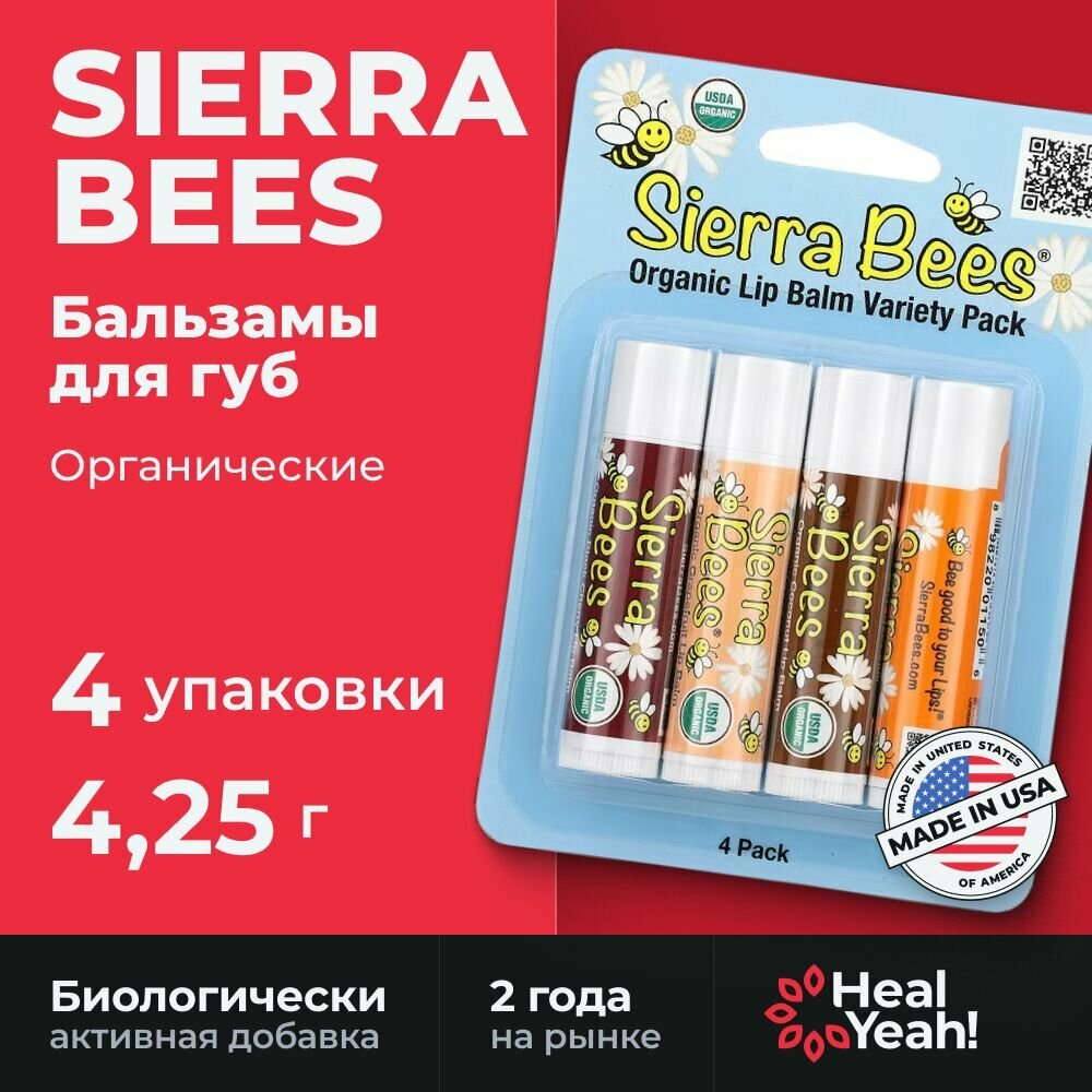 Купить Sierra Bees Набор органических бальзамов для губ, 4 шт. по 4,25 гр каждый (Ассорти)