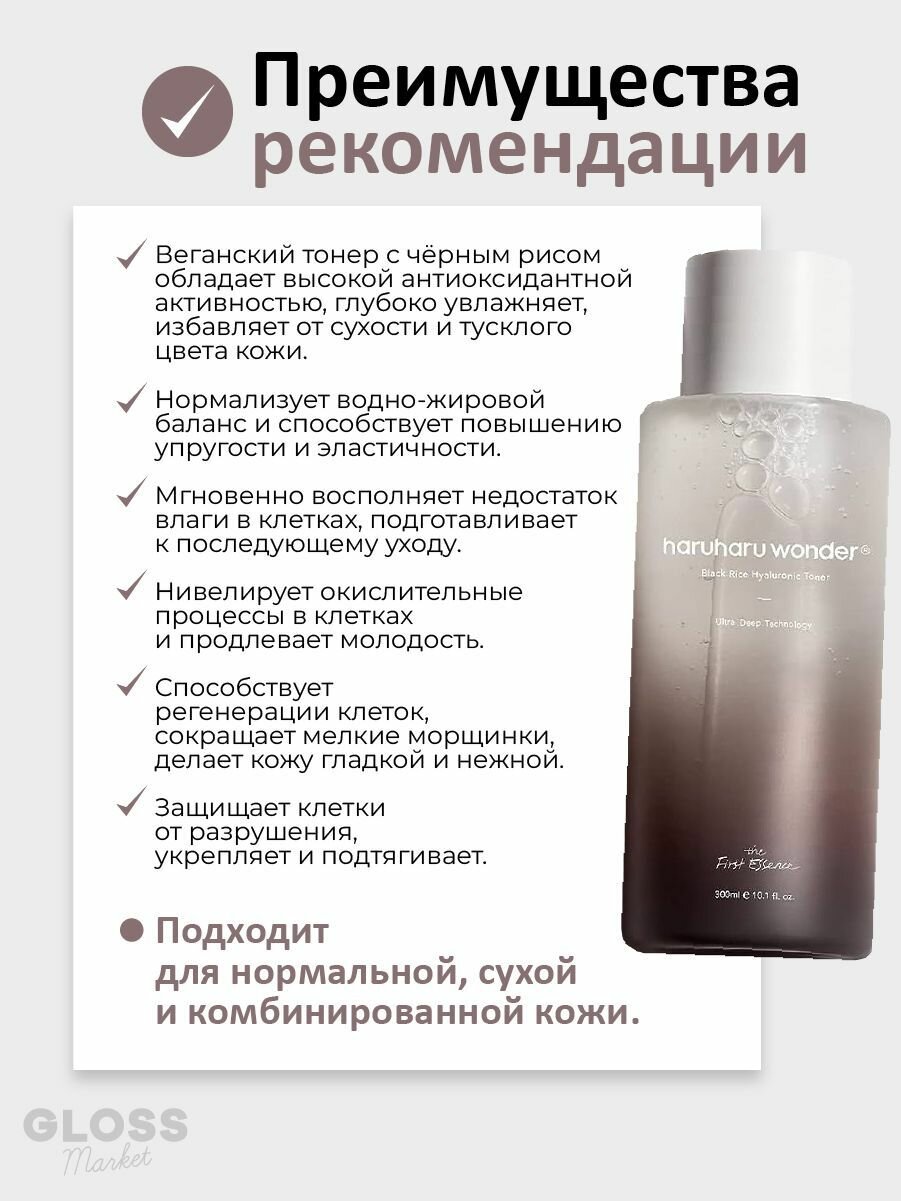 Haruharu Тонер для чувствительной кожи 300 мл Wonder Black Rice Hyaluronic Toner интересное: