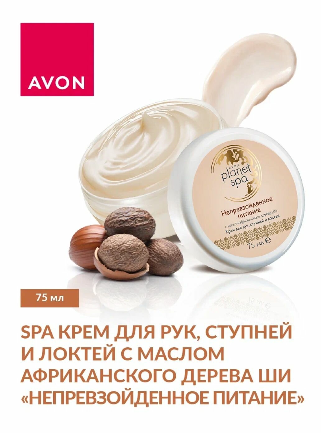AVON SPA Крем для рук, ступней и локтей с маслом африканского дерева Ши «Непревзойденное питание», 75 мл