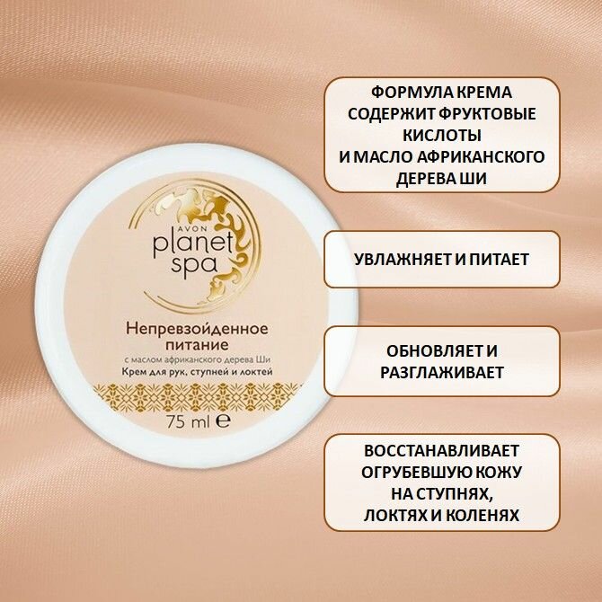 AVON Крем для рук, локтей и ступней Planet Spa Непревзойденное питание с маслом ши, 75 мл