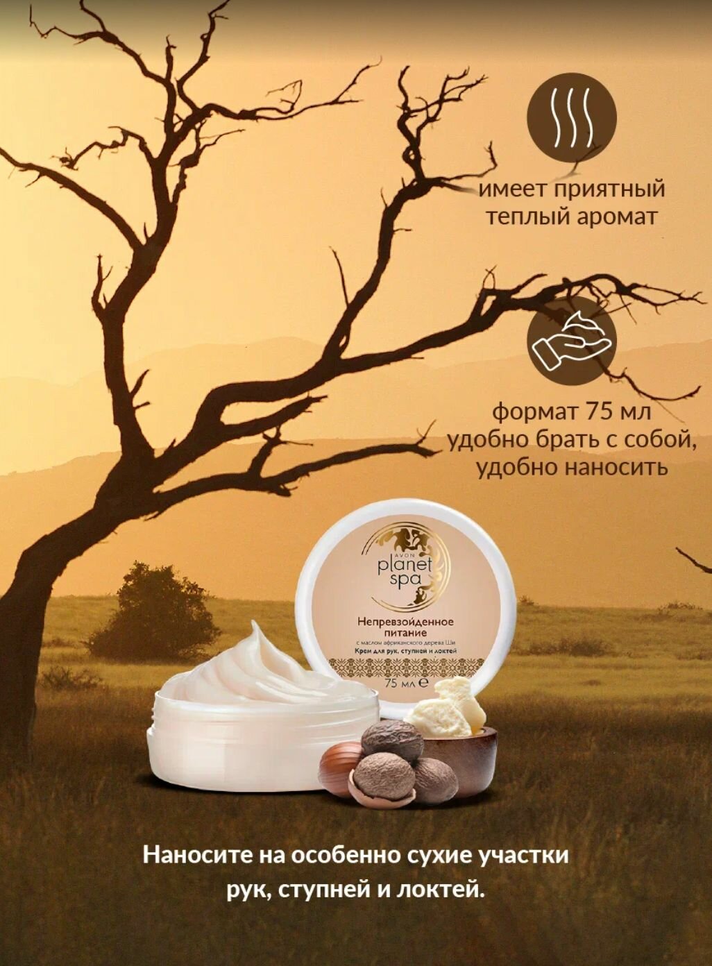 AVON-SPA Крем для рук, ступней и локтей с маслом африканского дерева Ши «Непревзойденное питание», 75 мл
