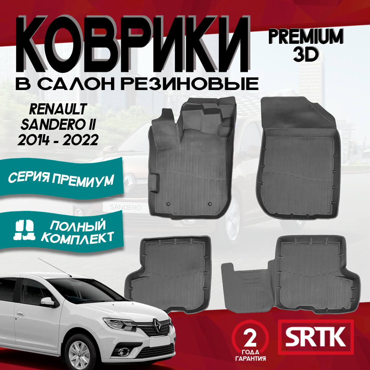 Купить Коврики резиновые для Рено Сандеро 2 (2014-2022)/ Renault Sandero II (2014-2022) 3D PREMIUM SRTK (Саранск) комплект в салон