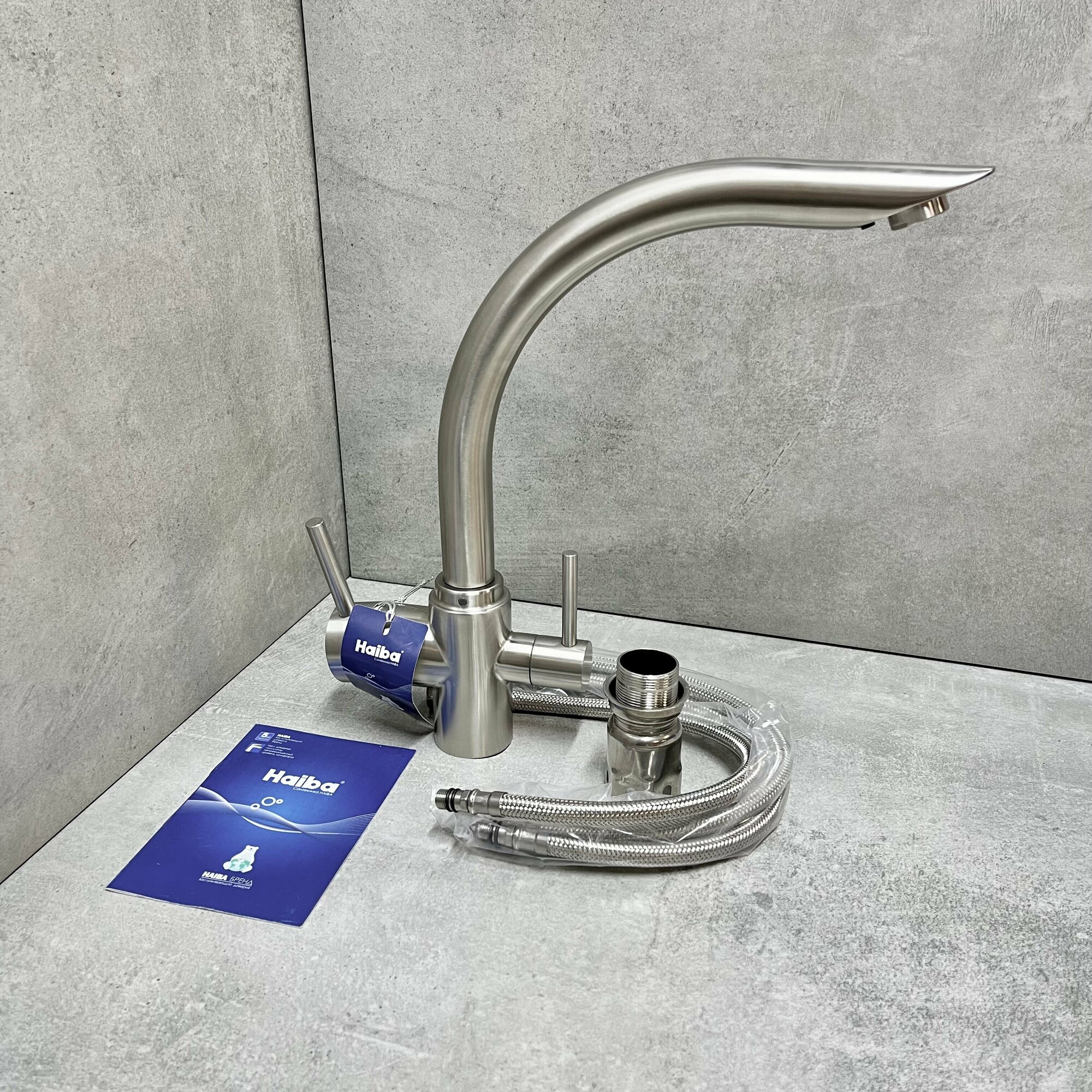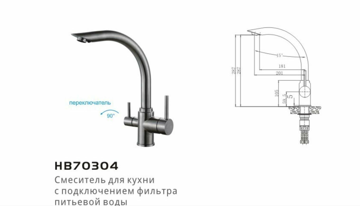 Смеситель для кухни Haiba HB70304 с подключением фильтра питьевой воды, нержавеющая сталь