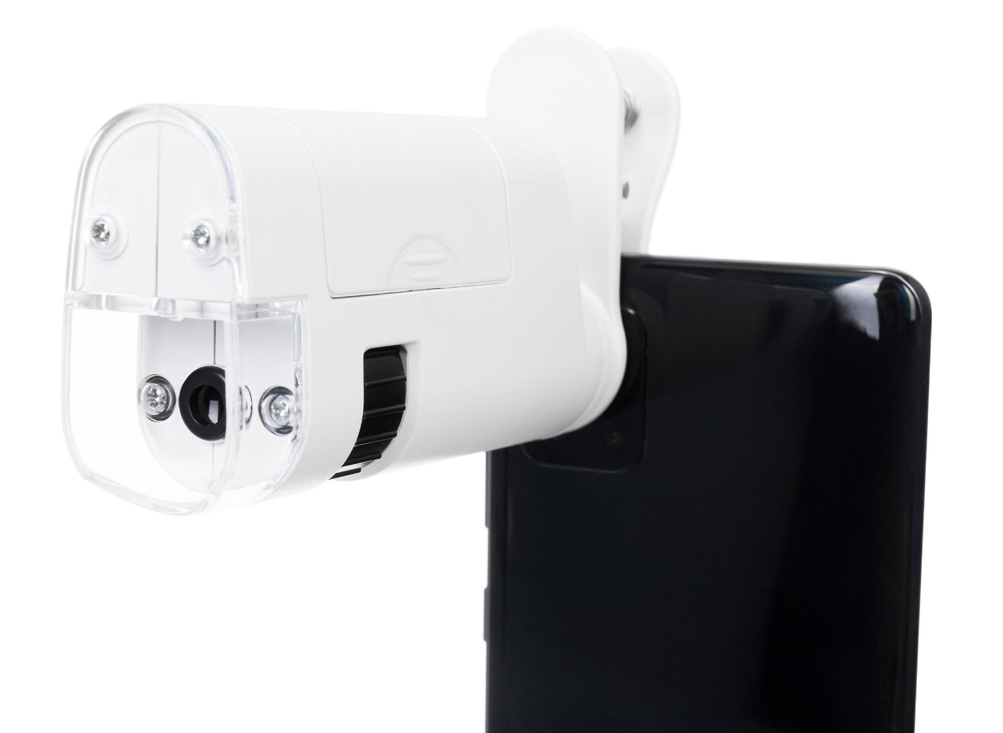 | Минусы: | Неудобно регулировать кратность увеличения, когда микроскоп прицеплен к телефону |
