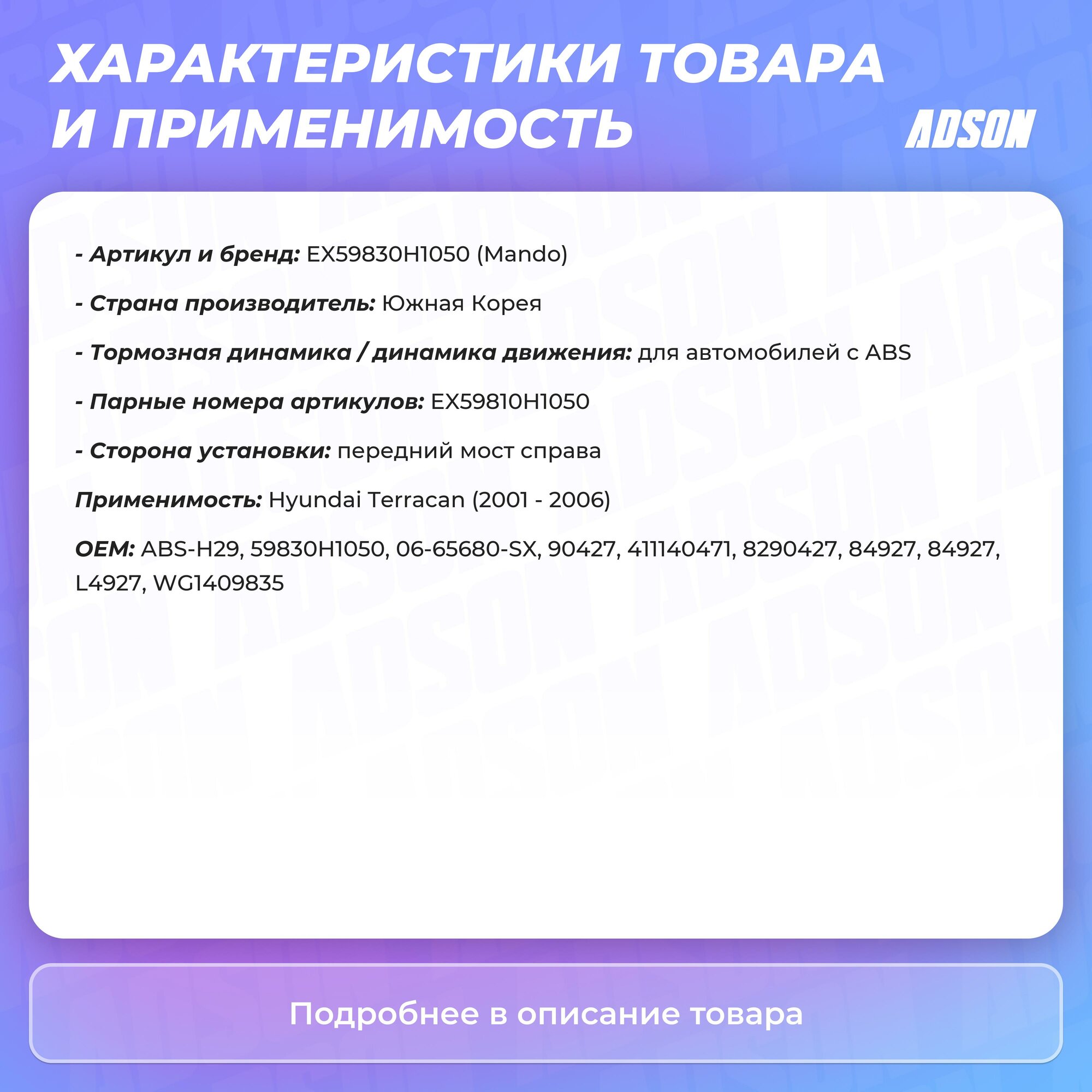 Датчик Abs Перед. Правый Hyundai Terracan 00-06 Ex59830h1050 Mando арт. EX59830H1050