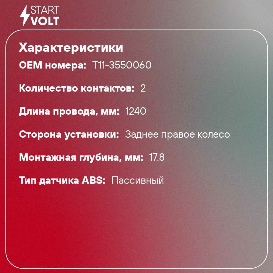 СохранитьДатчик Abs Chery Tiggo T11 06-> STARTVOLT арт. VS-ABS 2704 интересное: