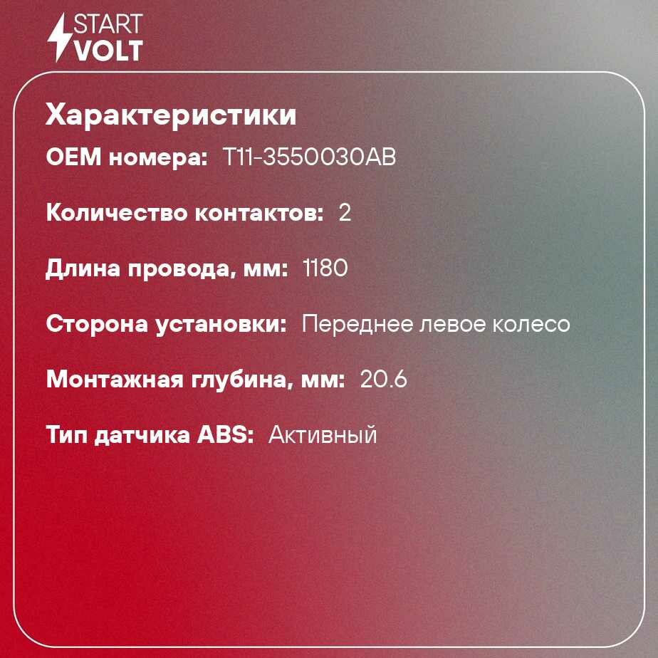 Датчик АБС передний левый STARTVOLT VS-ABS 2705 для Chery Tiggo
