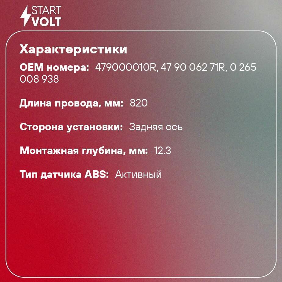 Датчик Abs Задний L=R Renault Fluence 10->/Megane Iii 07-> Старт Вольт Vs-Abs 0909 STARTVOLT арт. VS-ABS 0909