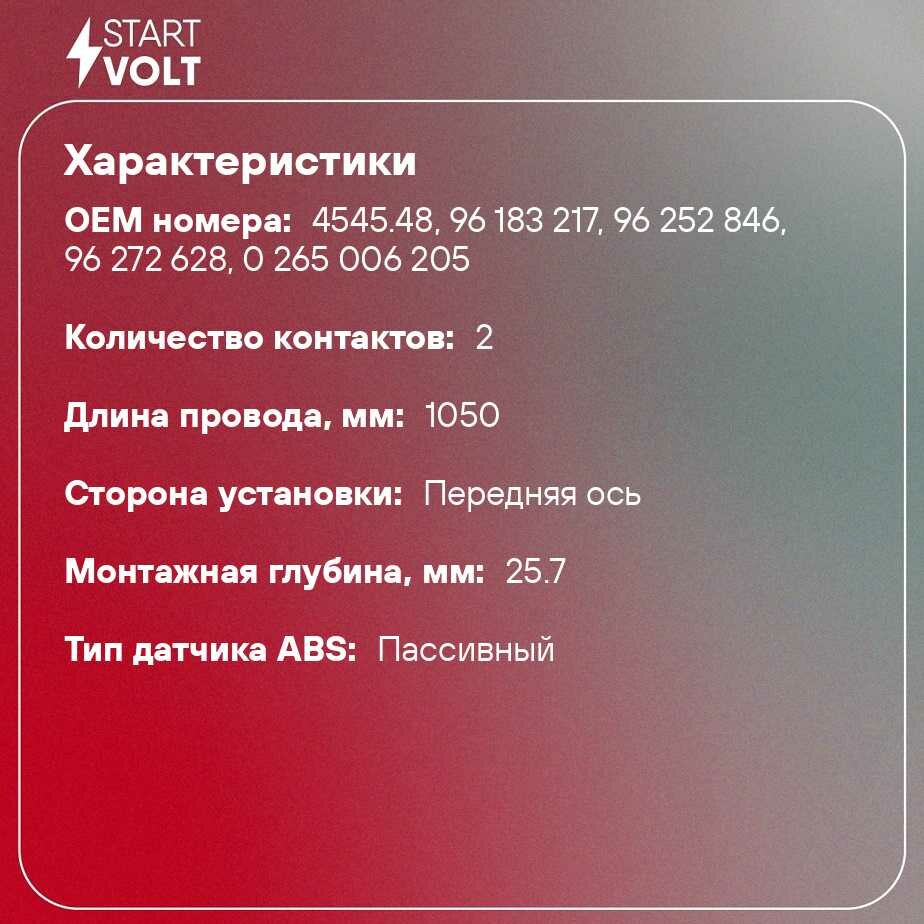 Датчик Abs Передний L=R Peugeot 406 Старт Вольт Vs-Abs 2018 STARTVOLT арт. VSABS2018
