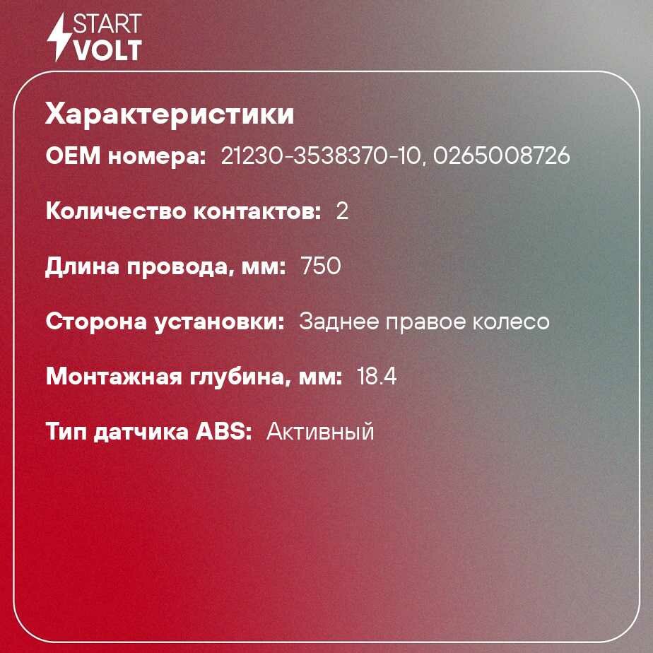 STARTVOLT VS-ABS 0124 Датчик ABS 2123 заднего колеса STARTVOLT правый н/о VS-ABS 0124